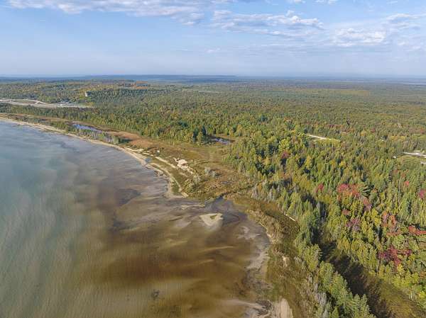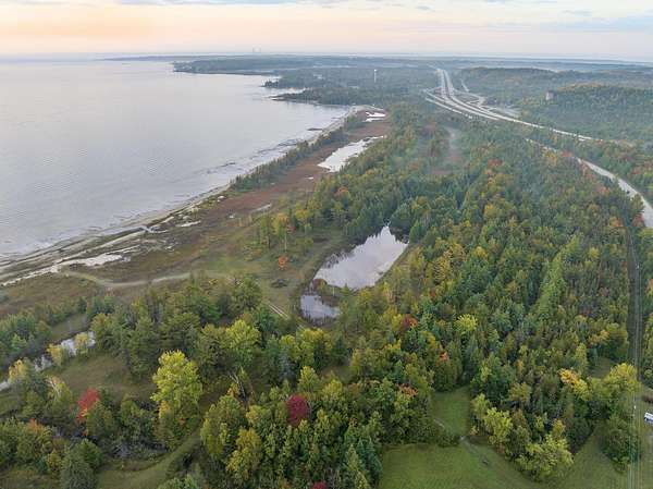 941' of sandy Lake Huron shoreline, breathtaking sunrises and a stunning view of Mackinac Island, are just a few of the features that come with this 51 acre parcel just 5 miles from downtown St. Ignace. A stunning piece of property to develop, the options are endless and the opportunity is rare. This large parcel is so close to all the amenities but is secluded at the same time making it a very desirable spot to build a dream estate, develop a resort or camp ground or dream up your own plan. 625' of frontage on Mackinac Trail and 301' on Rabbits Back Road provides the opportunity for multiple access points or high visibility options. With a mix of woods, water and beach there are many possibilities waiting. City utilities & natural gas available. Make your appointment today!