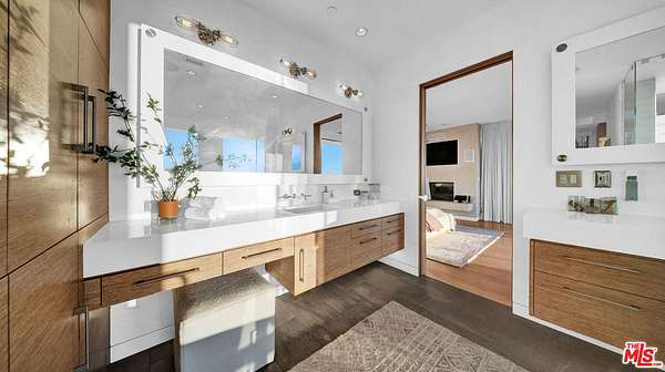 Perched above the Malibu coastline and framed by 2.4 acres of unspoiled landscape, this modern architectural estate captures the rare intersection of privacy, design, and commanding ocean views. Gated and secluded, the residence looks out across the Pacific, rolling canyon hills, and dramatic sunsets that define the Topanga lifestyle.Steel, glass, and concrete are balanced with warm natural finishes throughout, creating a home that feels both refined and grounded. Walls of glass dissolve the boundary between indoors and out, drawing in light, ocean air, and uninterrupted coastal scenery from nearly every room.A tranquil water feature marks the arrival experience, setting the tone for a home designed around calm, openness, and flow. The main living spaces unfold effortlessly across expansive patios, ideal for both entertaining and quiet retreat. The living room anchors the home with one of three fireplaces and connects seamlessly to the dining area and chef's kitchen.The kitchen is purpose-built for serious use and elevated entertaining, featuring Wolf and Sub-Zero appliances, double ovens, multiple sinks, and dual Viking dishwashers. Every element is positioned for function, scale, and connection to the surrounding views.The ocean-facing primary suite is a true sanctuary, wrapped in floor-to-ceiling glass and complemented by a spa-style bath with steam shower and a private balcony overlooking the coastline. Two additional guest suites occupy the main level. The lower level offers a media lounge with wet bar and a fourth en-suite bedroom, ideal for a gym, studio, or private office.The home is equipped with solar power, backup energy systems, whole-home water filtration, and an upgraded Savant automation platform controlling lighting, climate, sound, and shades. A newly installed camera system enhances security, and an electric vehicle charger supports modern living.For pet enthusiasts, a custom-built architectural catio integrates seamlessly into the home, offering a rare, design-forward outdoor environment.With parking for up to ten vehicles, proximity to premier hiking and biking trails, and a direct, scenic route to the beach below, this estate offers scale and seclusion without isolation.This is Topanga living at its most elevated. Private. Architectural. Immersed in nature. Defined by view, light, and air. Also available for sale.
