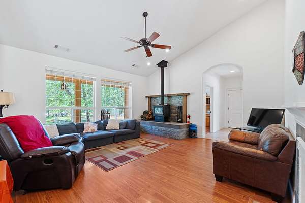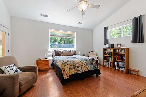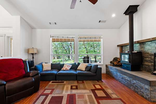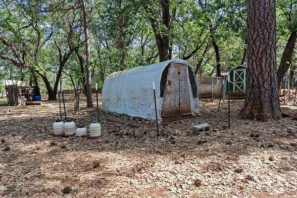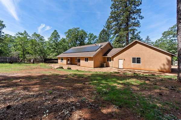 Private 5-acre retreat, formerly home to The Red Dirt Ranch! This 3BD/2BA home features an open floor plan with vaulted ceilings and a bright, spacious feel. Fully fenced and cross-fenced with an electric gated entrance, ideal for animals, agriculture, or multi-use living. Property includes multiple outbuildings, RV hookups, and a well-established homestead with garden area, small vineyard, and an orchard featuring nearly 20 varieties of young fruit and nut trees plus berries. Energy-efficient with solar, Tesla battery backup, and generator for potential off-grid living and peace of mind. Turnkey setup with room to expand--perfect for those seeking privacy, functionality, and a rural lifestyle. Bring your animals and make it your own!