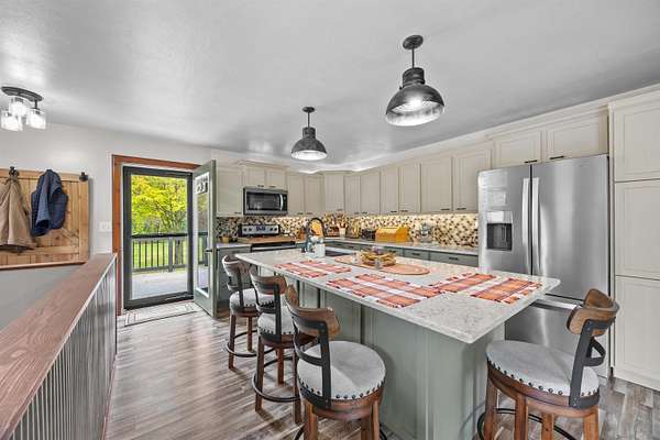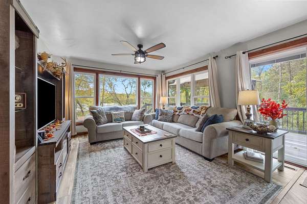 Welcome to this charming half-log home nestled on 2.19 peaceful acres with a beautiful view of the Wisconsin River! Recently painted in 2025, this 3-bedroom, 2-bath home offers rustic charm blended with modern comfort. Step inside to find a spacious, eat-in kitchen featuring solid surface countertops--including a heated section--perfect for cozy mornings or entertaining guests. The main floor hosts the primary suite, complete with a walk-in closet and private bath for added convenience. The lower level offers two additional bedrooms, a full bath, and a walkout basement leading to a patio where you can relax and take in the scenery. Enjoy the wrap-around deck for outdoor dining or simply soaking up the natural surroundings. While water frontage is not owned, you'll appreciate the beautiful river views and the convenient public boat landing just down the road--ideal for anyone who loves to spend time on the water. Golf enthusiasts will love having the Wisconsin River Golf Club nearby. Experience the tranquility of country living with easy access to Stevens Point amenities--this property truly offers the best of both worlds! Schedule your private showing today!
