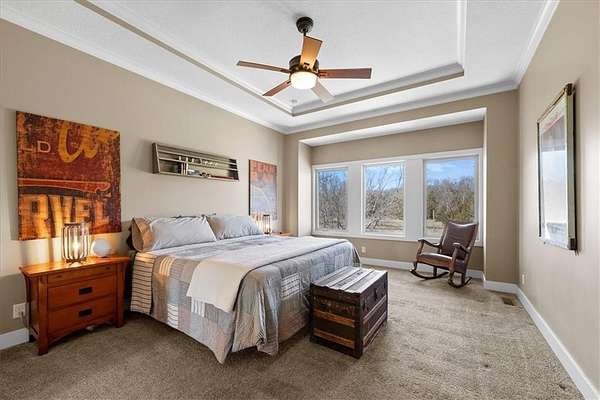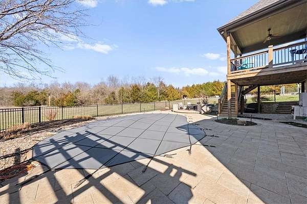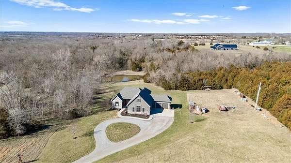 Set on 9.07 acres and crafted in 2016 by renowned builder Don Julian, this beautiful reverse 1.5-story home blends refined comfort with wide-open freedom. Accessed via a shared gravel easement off 119th Street, the setting unfolds into a private retreat framed by land, mature trees, and expansive skies. Thoughtful architecture and timeless finishes define the spacious 4-bedroom, 3.1-bath layout, offering a seamless balance of open-concept living and private sanctuary. The main level flows effortlessly to a covered deck overlooking the outdoor oasis-perfect for watching wildlife during morning coffee or sunset views across your acreage. A new roof adds peace of mind, while the meticulous construction reflects the craftsmanship synonymous with a Don Julian custom build. The walk-out lower level opens directly to a resort-style setting featuring an in-ground pool, expansive patio, and pergola designed for shaded gatherings. A designated area for a fire pit, a dry pond, and large outbuilding (30x40) add both function and flexibility to the property. The 4-car garage includes two standard bays plus two shorter-depth stalls ideal for smaller vehicles, ATVs, or workshop space. A few cattle currently graze a portion of the land and will remain until the end of June, with the seller continuing their care until removal. *Cattle Fence is Hot - DO NOT TOUCH!* Please note: the home shown on the JoCo Property Data website for 29160 W 119th St is NOT this residence-the smaller home displayed is 29100 W 119th St, also owned by the sellers but not included in this sale. OPEN HOUSES Currently Scheduled for Friday 3/20 2pm-6pm and Saturday 3/21 12pm-4pm.