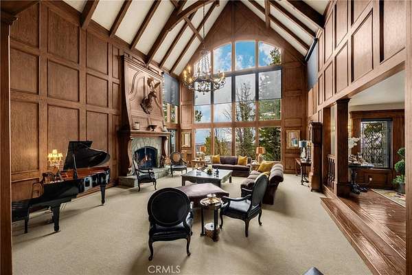 Perched atop the highest point of the exclusive, gated Cedar Ridge Estates, this grand estate is the ultimate private and secluded compound--featuring both a main residence and a guest home with professional recording studio capabilities. Boasting breathtaking lake views and located just minutes from your own single-slip dock, this is the pinnacle of luxury resort living. Expertly crafted by renowned builder Ron Dolman, this masterpiece showcases a level of detail and character rarely seen. Spanning approximately 18.5 acres across three separate parcels, the property offers exceptional potential for future investment or development. The main residence encompasses approximately 7,488 square feet of refined living space, including five en-suite bedrooms and a whimsical, storybook-style children's bunk room. In total, the estate offers seven full and three-quarter bathrooms. Step into the grand, five-star great room featuring soaring ceilings, a dramatic floor-to-ceiling fireplace, and walls of glass that frame sweeping views of the forest and lake. The spacious formal dining room flows seamlessly into the open gourmet kitchen, outfitted with top-of-the-line appliances. A warm, wood-accented den with a stunning stone fireplace and wet bar provides an inviting space for intimate gatherings. Also on the main level, discover a gentleman's office with exquisite millwork and another commanding fireplace.