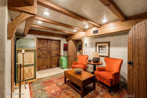 The guest home features a kitchenette, wine cellar, game room, and a sound room ideal for music or media production.