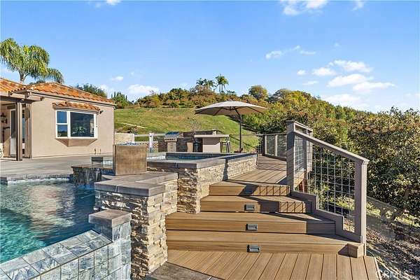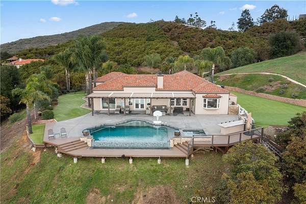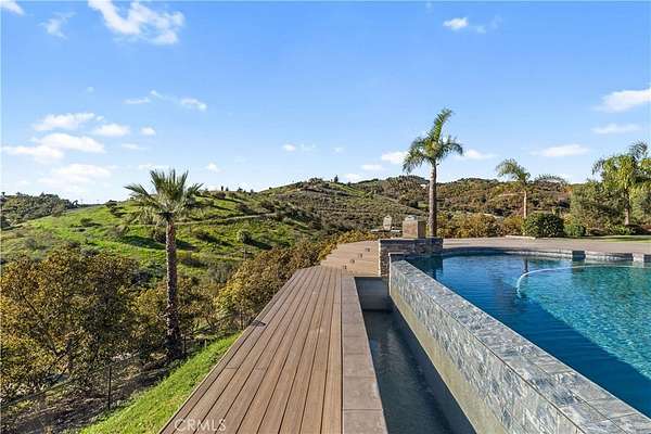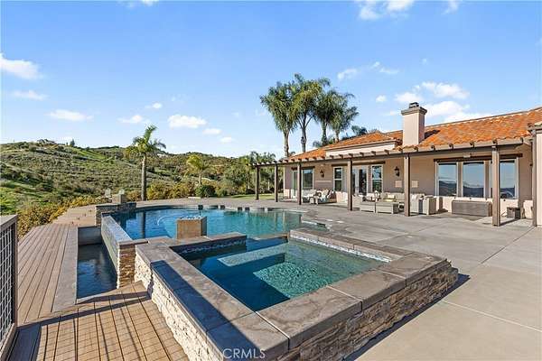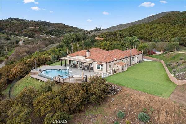 Back on the market at no fault of the seller. Incredible canyon and sunset views set the stage for this luxury De Luz estate pool home, perched at the end of a private cul-de-sac on over 4.55 acres of productive orchard land overlooking the protected Santa Margarita Preserve. This 4-bedroom, 3.5-bath, 3,272 sq ft residence offers the perfect blend of privacy, elegance, and resort-style living, complete with a breathtaking saltwater infinity-edge pool and spa framed by sweeping hillside vistas.