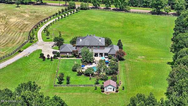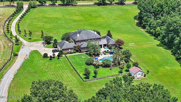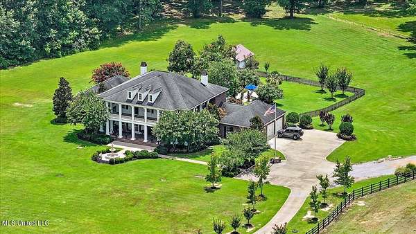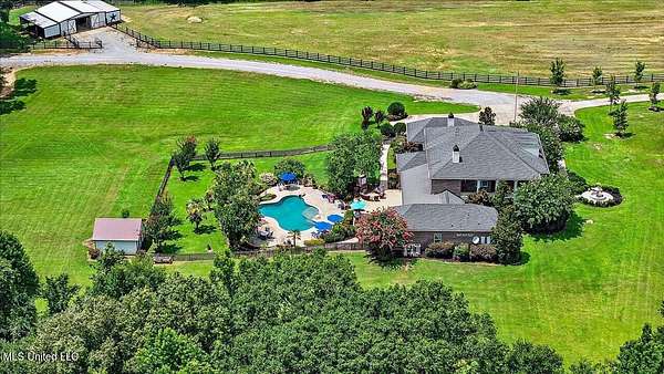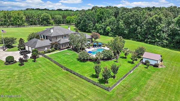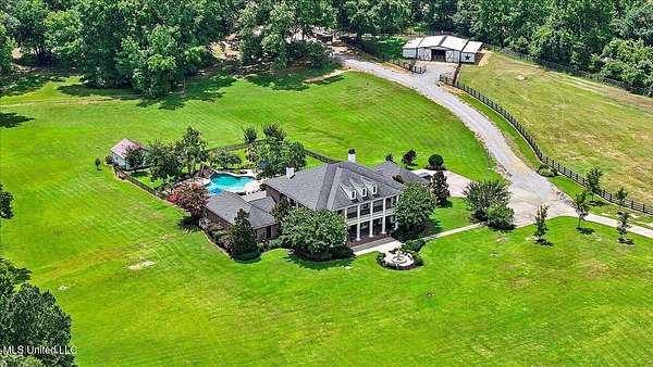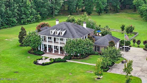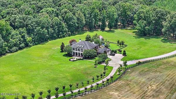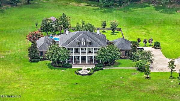 SOMERSET | A Southern Masterpiece on 46+/- Acres Welcome to SOMERSET, an extraordinary Southern Estate where timeless elegance meets refined craftsmanship. This private retreat is gracefully set on 46.10+/- acres of rolling pastures, manicured grounds, and wooded beauty. A stately brick and iron gated entrance introduces the property, leading to a striking red-brick manor wrapped in iconic white columns, sweeping porches, and balconies. Behind the home, a resort-style pool, fully equipped barn and workshop, and a 9-acre stocked fishing lake complete this unparalleled offering. Built in 2015 by a highly regarded local builder, the residence was designed with no detail spared. With 5,098 square feet of refined interior space-and 8,650 square feet under roof including generous porches-this classic Southern home features 5 bedrooms, 5 bathrooms, and expansive living areas designed for comfort, entertainment, and lasting impressions. Main Features Include: - Architectural Grandeur: Classic red brick exterior with white trim and black shutters, arched windows framed by towering two-story columns and wraparound porches that exude timeless plantation style. - Elegant Interiors: Hickory hand-scraped hardwood floors, soaring 20-foot ceilings in the great room, and 10-foot ceilings throughout the rest of the home. The Grand Vista Fountain greets guests with a showstopping first impression. - Gourmet Kitchen: A chef's dream with dual Aspen white granite islands, Bertazzoni oven and gas range with vent a hood, a butler's pantry between dining room and kitchen with a built-in bar complete with beverage cooler, sink and ice maker. - Living & Entertaining Spaces: Formal living room, fireside great room, sunlit keeping room with stunning views, spacious dining room, home office near primary bedroom, and a generous mudroom/laundry with sink and extensive storage. - Primary Suite Retreat: Located on the main level, the owner's suite overlooks the back acreage and resort-style pool. Spa-like bath with custom walk-in shower, soaking tub, dual vanities, and expansive his-and-her walk-in closets. - Upstairs Living: Three oversized guest bedrooms, each with incredible views all three rooms have access to the upstairs wraparound porch. The upstairs landing offers a dramatic overlook to the great room below. Outdoor Living at Its Finest Step into your own private paradise where comfort and beauty come together seamlessly. Just beyond the back door, a spacious covered porch invites you to relax in the shade, catch the game on the outdoor TV, or simply unwind in comfort. Beyond the porch, the backyard transforms into a tropical retreat. At its heart is a stunning gunite saltwater pool with a natural stone waterfall and slide-surrounded by stacked stone accents that enhance its resort-style feel. A nearby seating area centers around a charming wood-burning brick fireplace, perfect for cozy evenings outdoors. Lush, mature tropical landscaping and vibrant flowering plants complete the setting, creating a serene and visually captivating escape. The grounds are professionally maintained and thoughtfully designed for both relaxation and entertainment. Property Highlights: - 9-acre fully stocked fishing lake directly behind the home - Fenced pastures ideal for horses - 2 stall horse barn with tack room, wash rack, and hay storage - Workshop: Large rear workshop-perfect for equipment, tractors, or recreational toys - Additional outbuilding, currently used as a gym - Sprinkler irrigation in both front and back yards - Abundant wildlife, deer, and peaceful natural surroundings - 500-gallon buried propane tank, three Trane HVAC units, and three tankless water heaters, plantation shutters, and so much more. Yazoo School District with private schools, Benton Academy and Manchester near by. This magnificent home is a must see!!