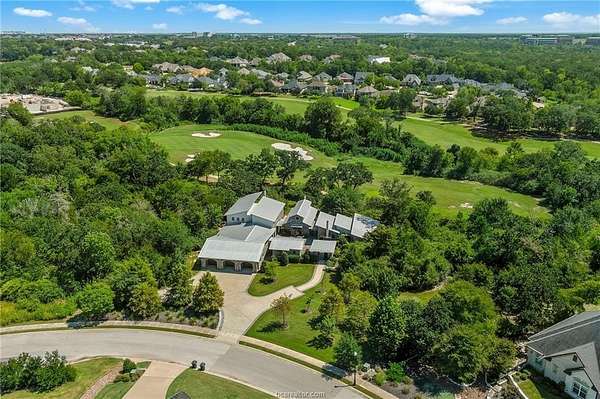 Experience luxury redefined in this private 6,021 SqFt custom estate built by Crowley Homes, nestled on 1.83 acres along the 4th fairway of the Jack Nicklaus-designed Traditions Golf Club. A striking blend of industrial and modern elegance, this architectural masterpiece showcases reclaimed 100-year-old brick, historical wood accents, hand-built patina finishes by artist Clover Cochran, and hand-cut mesquite inlays. Inside, enjoy a chef-caliber kitchen with premium built-in Thermador appliances, expansive dining and living spaces, two dedicated offices, a state-of-the-art theater room, and a massive upstairs game room with serving bar and balcony. The spa-inspired primary suite includes a private study, Scandinavian dry sauna, oversized steam shower, soaking tub, and dual walk-in closets. Entertain effortlessly outdoors with a large covered patio, complete with a fireplace, brick pizza oven and an outdoor kitchen. Smart-home automation and Ram casement windows complete this showpiece in the heart of Aggieland's most coveted golf community--just minutes from Texas A&M University.