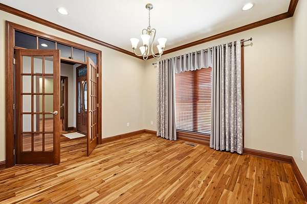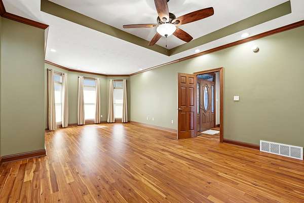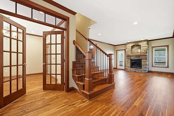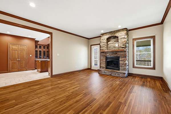 Extraordinary Custom Luxury Estate on 3 Acres. Experience elevated living in this exceptional custom-built 6 bedroom, 5 bath home perfectly situated on 3 private acres, just minutes from Rt 60, I-64, and the Village of Barboursville. Offering over 5,000 square feet of thoughtfully designed living space. The main level showcases a grand owner's suite measuring 25x14, complete with dual walk-in closets, dual vanities, and a relaxing soaking tub. An additional first-floor bedroom offers ideal flexibility for guests, multi-generational living, or a private office. Designed for both entertaining and comfortable everyday living, the main living area is anchored by a gas fireplace and opening to a covered outdoor living space, perfect for enjoying the peaceful surroundings. The upper level offers three spacious bedrooms, including two private en-suites, providing comfort and privacy for family or guests. The walk-out lower level features 10 ft ceilings and offers versatility with a secondary laundry/kitchenette area, 6th bedroom, full bath with dual access, expansive gathering room, indoor workshop, and dedicated 12.1x11.8 storage room. Additional amenities include a whole-house generator. Enjoy the serenity of a private setting while remaining only minutes from modern conveniences.