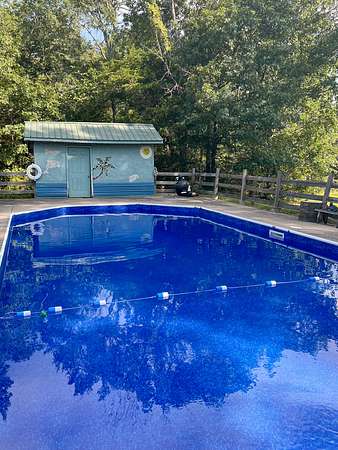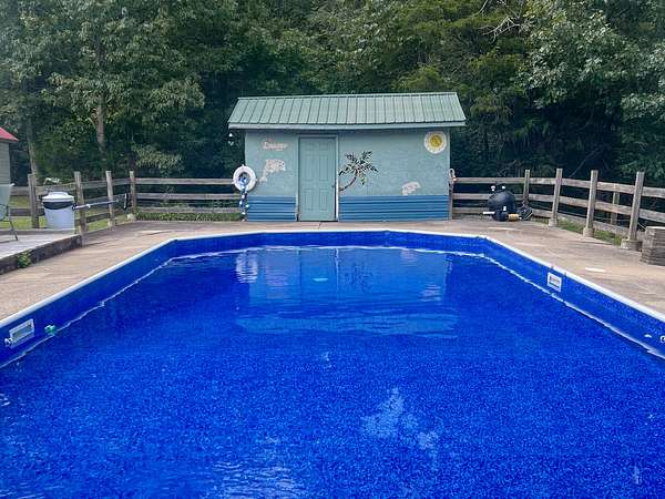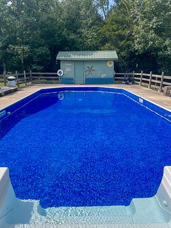 A detached 2-car garage provides ample space for hobbies or equipment, complemented by a separate shed for additional utility and storage. Unwind by the inground pool, recently upgraded with a new liner, pump, and filter, perfect for enjoying warm summer days.