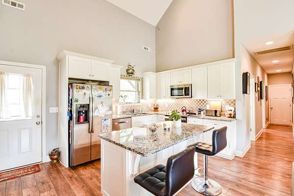 - High Ceilings, Kitchen Island, Open Floorplan, Pantry