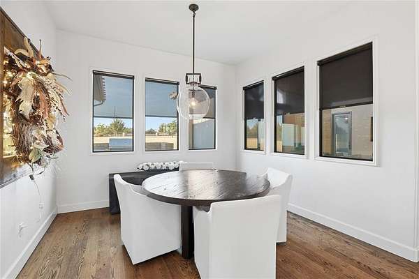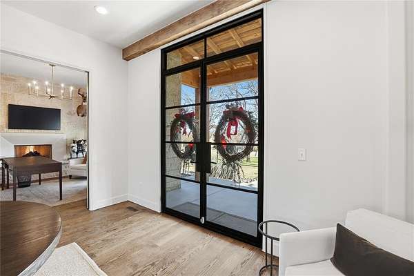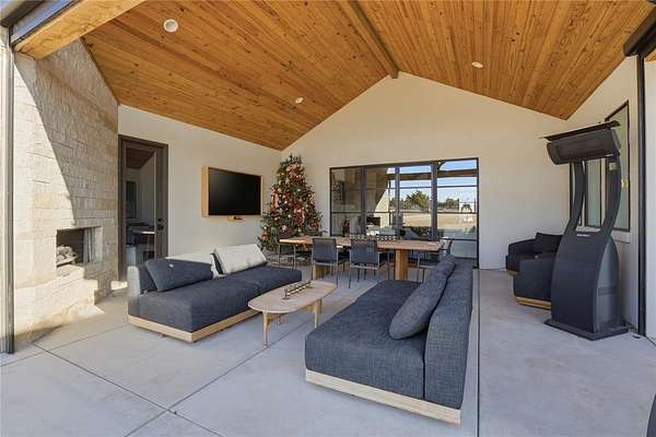 Outdoor living becomes truly exceptional with a vaulted cedar-clad patio, exposed beams, a stone gas fireplace, and motorized Fenetex sunshades that create a comfortable, private oasis for year-round enjoyment. Thoughtful design, luxurious finishes, and the convenience of an East Edmond location combine to make this home a rare offering for the buyer seeking elevated living in a tranquil, gated setting.