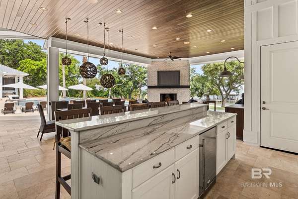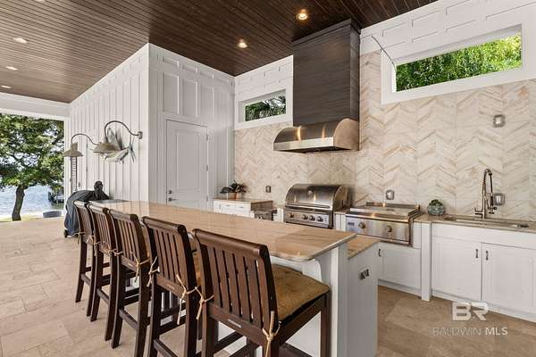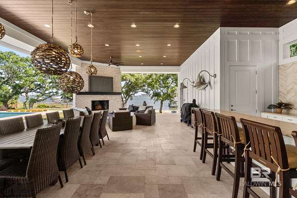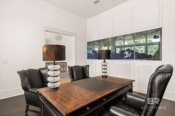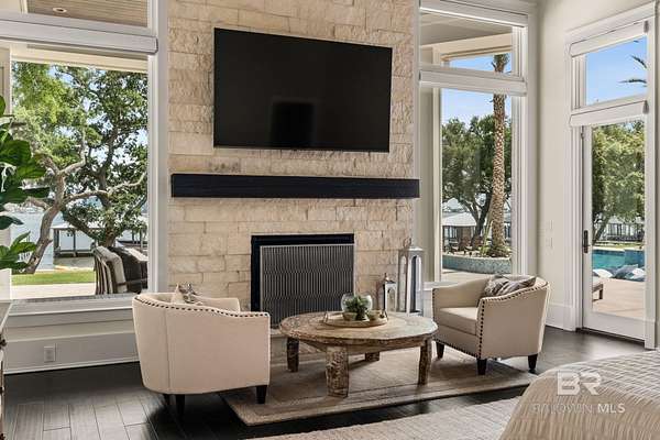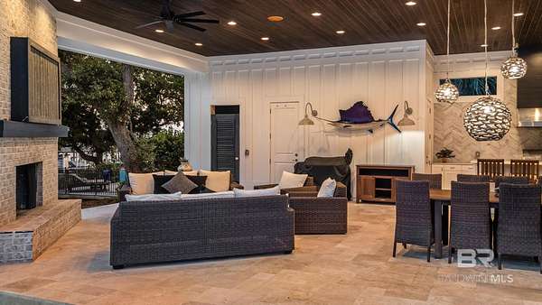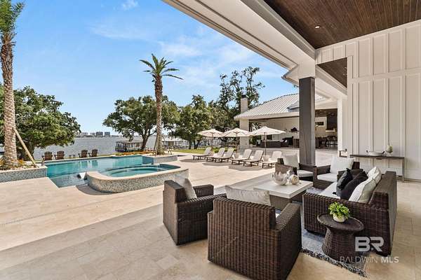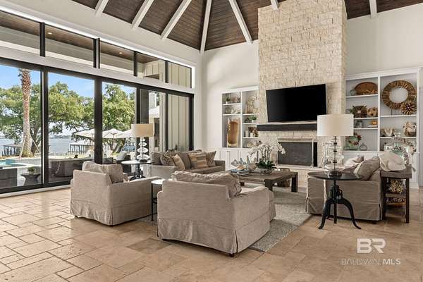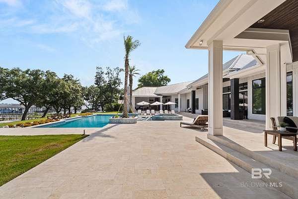 Where Luxury meets Legacy. This 7BR/8BA + 2 half-bath waterfront estate is the epitome of coastal sophistication. Set on elevated ground with 190' of private beach and a 2021 dock upgrade that includes flow-through decking and has deep-water access, this smart home features a chef's kitchen with Thermador appliances, his-and-hers offices, game room, 140 inch screen theater, safe room, and custom security system. In the heart of this exquisite home you will find the 1400 gallon custom built salt water aquarium. Enjoy a 9 foot deep, chilled and heated, saltwater pool, 10x10 spa, and full outdoor kitchen, all designed for flawless indoor-outdoor living. This is more than a home- it's a lifestyle. Every detail has been meticulously curated to offer a seamless blend of luxury, comfort and refinement, allowing you to fully relax and enjoy the essence of paradise. Built with enduring quality, this Chad Loper home upholds a standard of excellence designed to last for generations. Buyer to verify all information during due diligence.