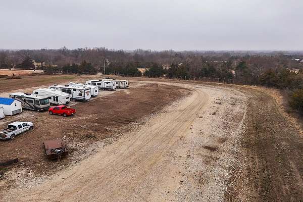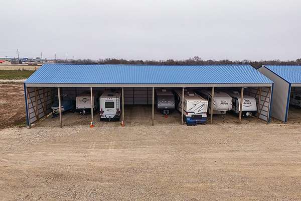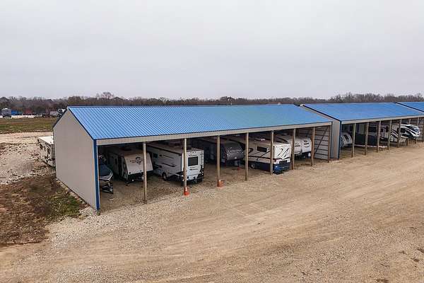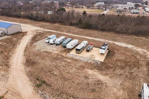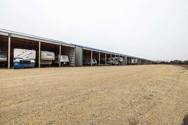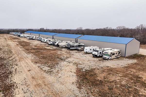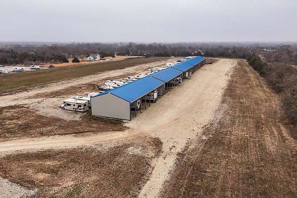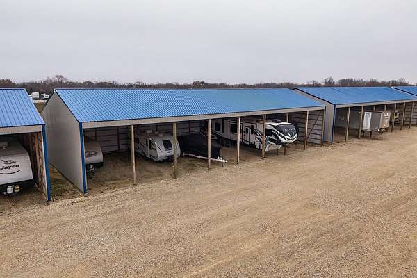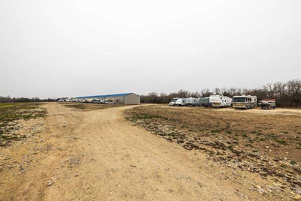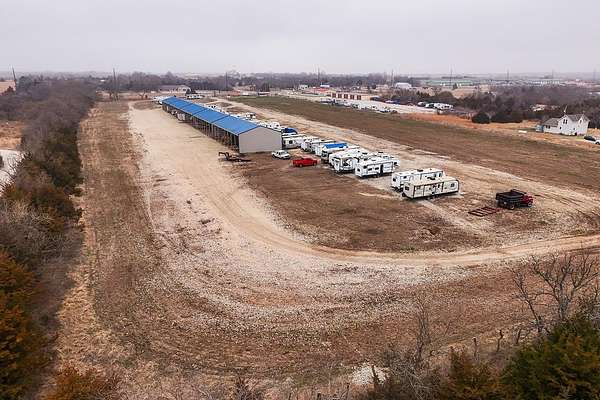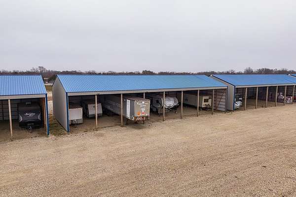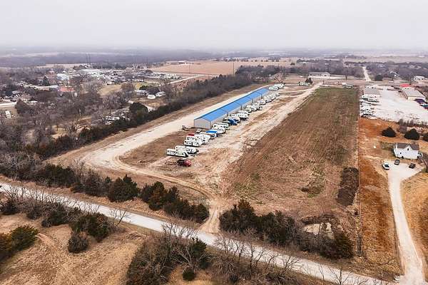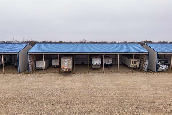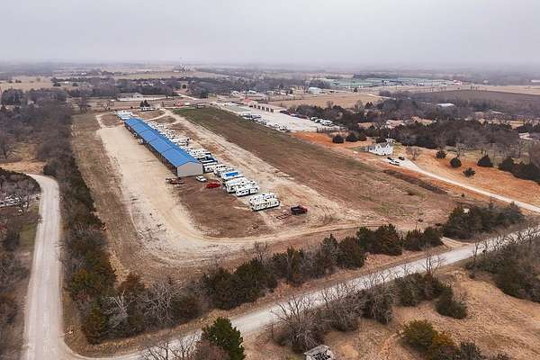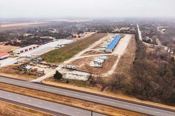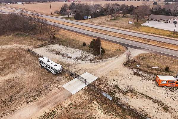Exceptional investment opportunity with expansion potential, with major highway frontage and visibility, located just east of Andover, KS near the east side of Wichita!!! This 12.1+/- acre RV storage facility offers both covered and uncovered storage options, with only approximately 4 acres currently developed-leaving nearly 75% of the property available for future expansion or redevelopment. At full buildout, the site could accommodate 400+ RV storage spaces. Constructed in 2023, the property features five metal storage buildings, each containing 8 covered spaces (12X40 each) for a total of 40 covered units and is suitable for RVs and campers, boats, work trucks and trailers. Buildings have gravel floors, 16 ft+ sidewall heights, and ceiling clearance suitable for virtually any size RV. Additional uncovered storage spaces include a combination of gravel and concrete parking areas. Located directly on US Hwy 54, one of Kansas' primary east-west corridors, just east of Andover Rd and minutes from east Wichita. This highly visible location benefits from daily traffic counts exceeding 20,000 vehicles and sits along a major travel route connecting residents and travelers to regional lakes and recreational destinations. The property is fully fenced with two electric security gates and lighting throughout. Also included is an owner's utility shed equipped with 200-amp electrical service and solar panels. Tenants have the option to purchase personal property insurance either through a private carrier or directly through the owner. Gross annual rent for 2025 was $57,891, and still climbing, as this is a new business. Strong current income with significant room to expand makes this a compelling opportunity for investors looking to grow a high-demand storage asset. Agents and buyers to confirm all information pertinent to them. All information deemed reliable but not guaranteed.