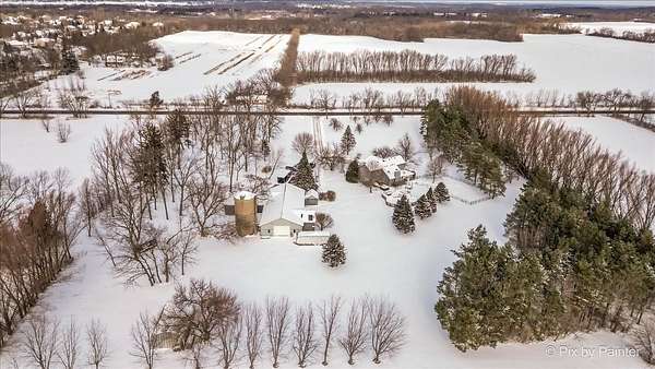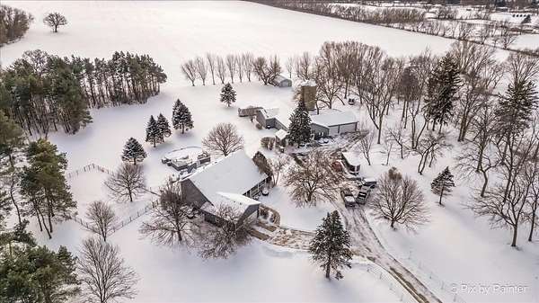 Beautiful nearly 7 acre estate located in Spring Grove with a Richmond mailing address. Here is your chance to live where you run your business, Zoned B2- do your due diligence with the Village of Spring Grove. The home exudes charm as you walk up to the large front porch that overlooks your grounds. Main floor primary suite an added plus with large walk in closet, sunken whirlpool tub, double bowl vanity, and separate shower! Kitchen features large center island with plenty of seating and food prep space, & stainless steel appliances. Vaulted great room with stone woodburning fireplace is open to kitchen which makes entertaining seamless. Formal Dining room for all the special occasion dinners! Lovely sunroom with heated slate floors located right off the kitchen! Second floor features an additional two bedrooms, loft, and full bath. Finished basement gives you all the extra space you need, recreation, workout, office, or 4th bedroom space in addition to plenty of storage and half bath! Main house has two car attached heated garage. Talk about an out building, wow! 80x40 structure with large clear span, heat, air conditioning and handicap accessible bathrooms to house your potential future business ventures! 11 foot ceilings and (2) drive in doors, 8x10 and 14x10. Adjacent to the shop is a 3.5 car garage and 620 sq ft quonset hut for even more storage to park your vehicles, toys and more! Paved driveway leads you to your home and outbuildings. Enjoy summer time fun in your 33x18 above ground heated pool and hot tub! This could be the home/business opportunity you have been looking for!