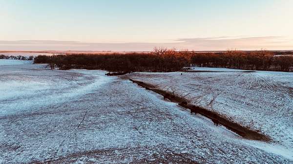 The property sets up extremely well for both row-crop and livestock. You've got roughly 420+- acres of productive farm ground, with the balance made up of pasture, hay ground, and creek corridors that add shelter and a nice natural break across the tract. New barb wire fence runs throughout the property, and the grazing setup is ready to go with six geothermal waterers for cattle along with rural water available across the place. Access is a big plus here too--multiple gravel road approaches and good travel throughout the property make it easy to get equipment in and out and to move cattle where you need them. There is also an artesian well on site, though it has not been ran recently.