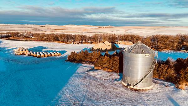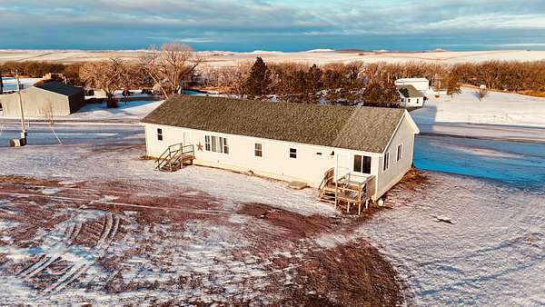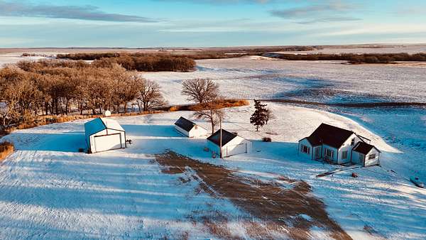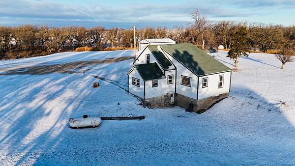 Improvements include a larger main home and a livable second residence, along with a shop/machine shed, grain bin, and additional sheds/outbuildings. The main house is a one-story home that has been updated upstairs and downstairs and would make an ideal family home or hunting lodge. County records list the main home at 8 bedrooms and 3 bathrooms, with the bedroom count spread across both the main level and the basement. A full concrete basement adds valuable bonus space, with some rooms already finished/partially finished--ideal for storage, gear, or extra sleeping space during hunting season--and there's also a separate concrete-walled room that would be a great spot for a walk-in safe. The smaller house is older but in good shape and would be a great option for a guide lodge or overflow housing, and it features all new windows and siding. You also noted new shingled roofs on all buildings.