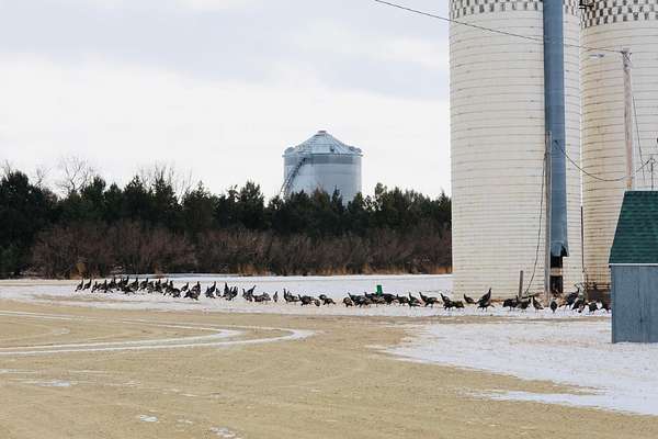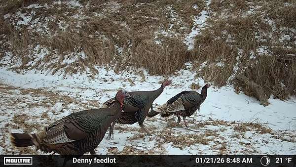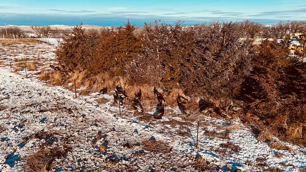 Beyond the ag value, this place has a lot to offer for hunting and wildlife. With Oak Creek and Whitehorse Creek running through the property, you've got natural travel corridors, cover, and water that pull wildlife in and keep it there. The turkey numbers are impressive--around 200 birds were seen along the creek--and there are deer scrapes throughout the farm, including one on a tree right between the two houses. Pheasants are common, and trail cameras picked up bobcats within the first night, which says a lot about the habitat and how lightly pressured the area can be.
