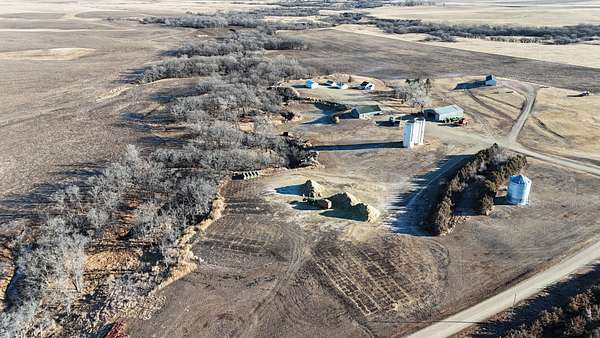 Improvements include a larger main home and a livable second residence, along with a shop/machine shed, grain bin, and additional sheds/outbuildings. The main house is a one-story home that has been updated upstairs and downstairs and would make an ideal family home or hunting lodge. County records list the main home at 8 bedrooms and 3 bathrooms, with the bedroom count spread across both the main level and the basement. A full concrete basement adds valuable bonus space, with some rooms already finished/partially finished—ideal for storage, gear, or extra sleeping space during hunting season—and there’s also a separate concrete-walled room that would be a great spot for a walk-in safe. The smaller house is older but in good shape and would be a great option for a guide lodge or overflow housing, and it features all new windows and siding. You also noted new shingled roofs on all buildings.