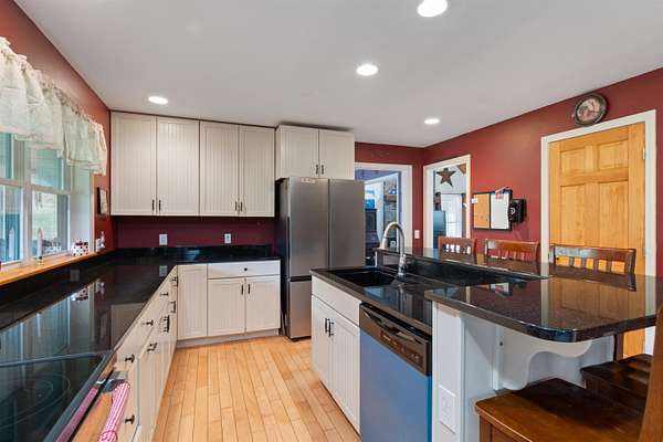 Discover peaceful country living with 3,150 square feet of finished space on over 13 stunning acres with this charming 3-bedroom, 2-bathroom home, complete with a barn, perfect for the hobby farmer, homesteader, or anyone craving space to spread out. Step inside to an inviting open layout featuring a large kitchen island w/ seating for several people, ideal for gatherings or casual meals. A separate dining area provides additional space for hosting. The first-floor primary suite includes its a full bath for added comfort & convenience, & first-floor laundry makes everyday living effortless. The living room features a fireplace made entirely of local Vermont stone. Upstairs, you'll find two additional bedrooms & a bonus room currently used as a guest room, offering flexible space for visitors, hobbies, or storage. The partially finished basement is set up as office space--perfect for remote work, creative projects, or expansion potential. Enjoy morning coffee or evening sunsets from the wraparound porch, where views of the property showcase its beauty in every season: vibrant fall foliage, lush summer greenery, a winter wonderland, and blooming spring flowers. Outside, the acreage provides endless opportunities, gardening, livestock, trails, or simply soaking in the quiet surroundings. The barn adds practicality and charm, ready for animals, or workshop space. If you've been dreaming of rural tranquility with room to live, grow, & create, this property is the perfect fit.