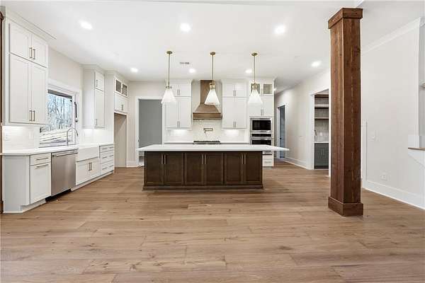 This home has it all...Location...Location...Location...best schools in the area...NO HOA!!..nestled in the heart of serene West Cobb, conveniently located near the Avenues of West Cobb, great access to all that the area has to offer...lots of land and room to play...this stunning new construction farmhouse exudes rustic yet modern charm...it starts with the large covered porch welcoming you in...the thoughtfully designed living spaces, custom designs that live exceptionally well all with lots of flexibility... a great blend of functionality with heirloom worthy elegance...perfect for the bustling rhythms of a large family or a multi generational household where every generation finds their space...Master on main with secondary bedroom / private bath on main too or could be used as an office on the main level...the heart of the home is wide open as you walk through the large family room with 12' ceilings and overhead beams to accent the architecture with a 12' sliding door that allows you to bring the large vaulted covered porch to the inside... seamlessly flow into the chef's kitchen with enormous island, gas range, pot filler and overhead vent hood, separate microwave and wall oven, and utilize the tilt out, pass through window behind the kitchen sink to connect the outside cooking to the inside...the large pantry, mudroom, and huge laundry room with sink, cabinets and counter space are all perfectly tucked behind the kitchen but conveniently related to the expansive 4 car garage...which includes a pet washing station...on the other side of the kitchen leads to a wet bar / butlers pantry connecting the kitchen to the dining room, no space is wasted with the built in doggie room under stairs just off the kitchen as well...rear stairs to the second floor from the 4 car garage lead to the 2 bedroom suite that is over the garage from the 4th bay of the garage (this space could be the in-law suite or an office / studio with a private entrance)..a large bonus room that could serve as a game room and a theater, it is that large of a space...secondary bedrooms that also have niches for small desks / chairs for study space with natural lighting all around...walk in closets and private bathrooms too...Custom features are all throughout, including cabinets, trim work, lighting / plumbing with all selections selected by professional decorator...the rear covered porch includes a built in stainless grill with vent hood stainless drawers and storage with stone counter tops...the thoughtful planning can even be seen in the foam insulation on the roof so all the attic is conditioned space including the huge walk up attic storage area over the family room...you will have plenty of storage here and it is all conditioned, easy to access and dry...this home is a must see for the family looking to locate in West Cobb...too much to list come tour this home...