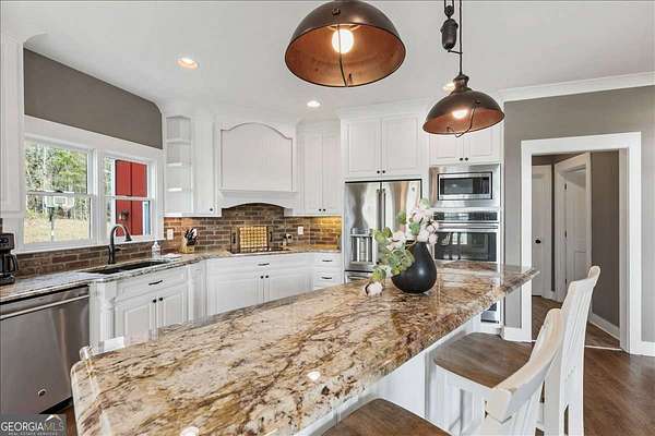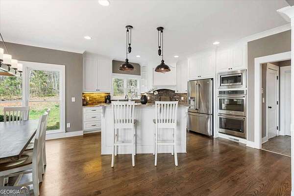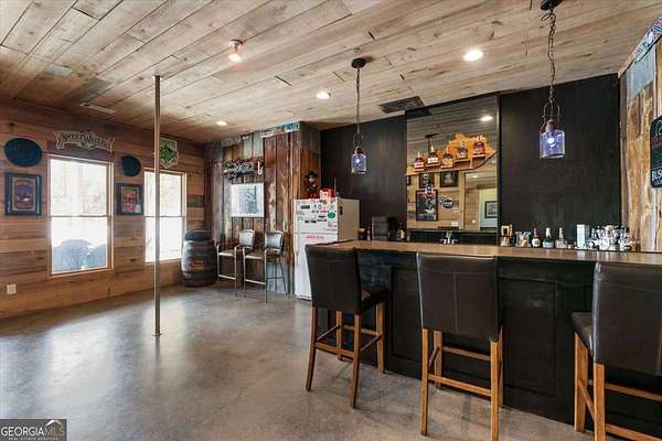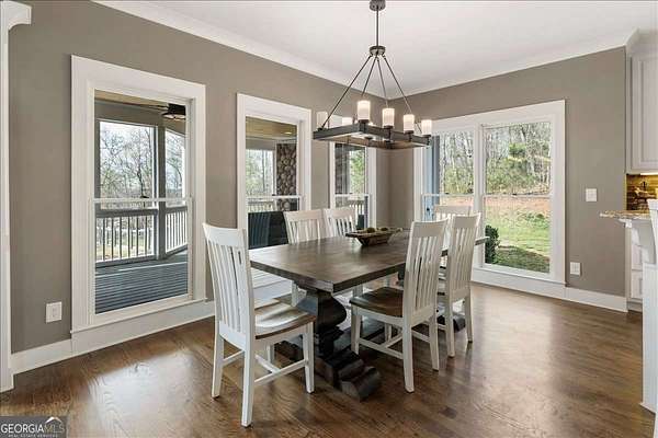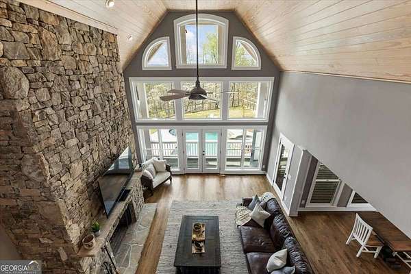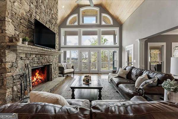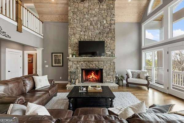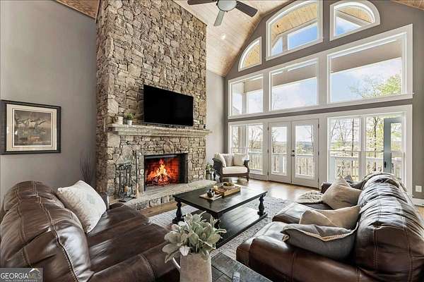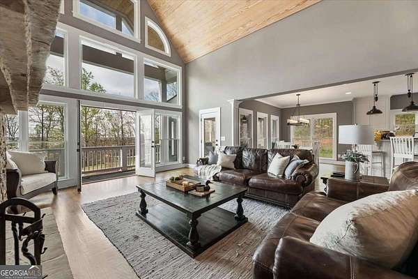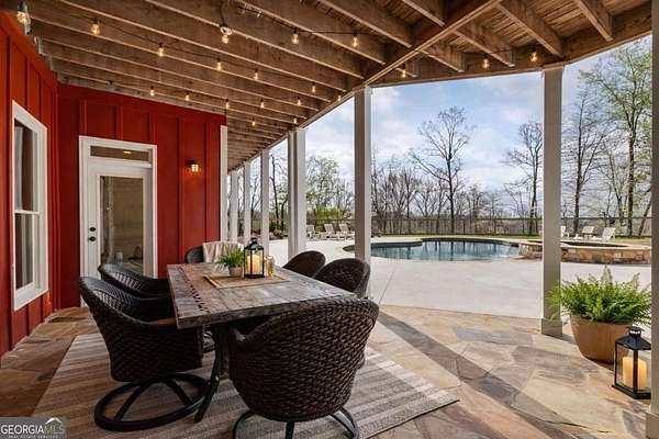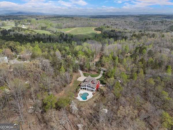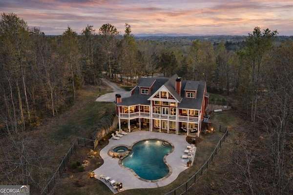 Tucked away on five private acres, this custom-built retreat offers a rare blend of space, privacy, and everyday luxury. From the moment you arrive, the long, winding driveway sets the tone-quiet, secluded, and completely your own. Inside, soaring ceilings and a stunning stone fireplace anchor the main living space, where natural light pours in and every window frames the surrounding landscape. The kitchen features stainless steel appliances, a breakfast area, and seamless access to the screened-in porch-perfect for morning coffee or unwinding at sunset while overlooking your backyard oasis. The primary suite on the main level offers both convenience and comfort, while the fully finished terrace level creates a second living experience with a built-in bar, media space, additional bedroom and full bath, all opening to the outdoor patio and pool. Step outside and the lifestyle continues. The custom pool and spa are surrounded by peaceful wooded views, offering the perfect setting for entertaining or relaxing in complete privacy. With five acres to explore, there's room to truly make the property your own-whether that's riding ATVs, enjoying the outdoors, or simply taking in the quiet. Located in the Dawson County High School district, this property delivers a unique opportunity to enjoy a private, resort-style setting while still being within reach of everyday conveniences.