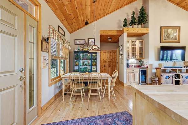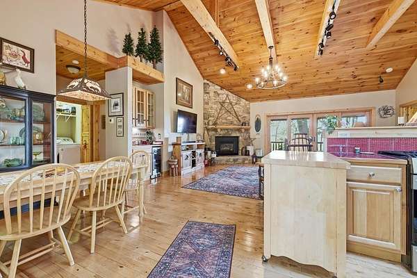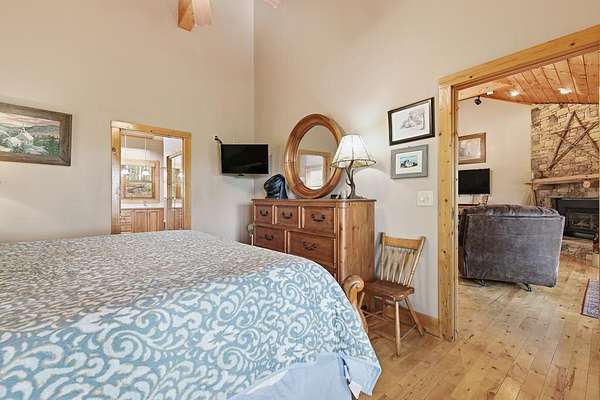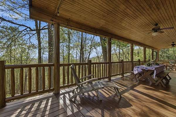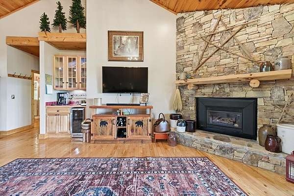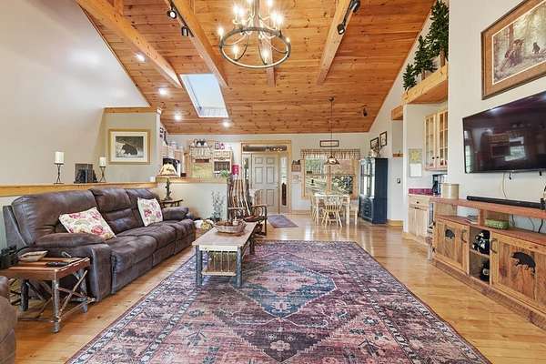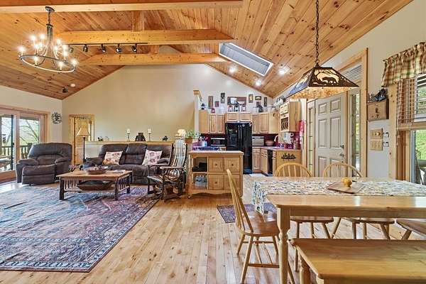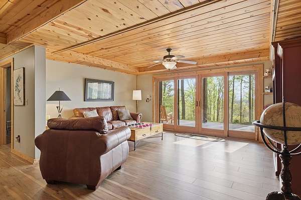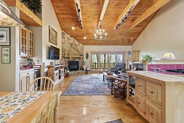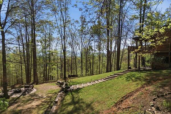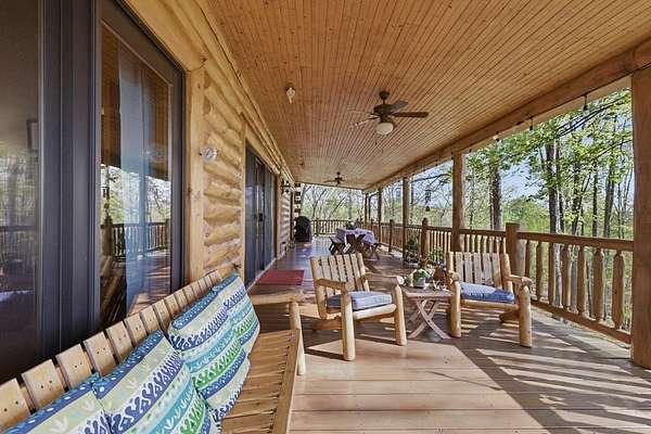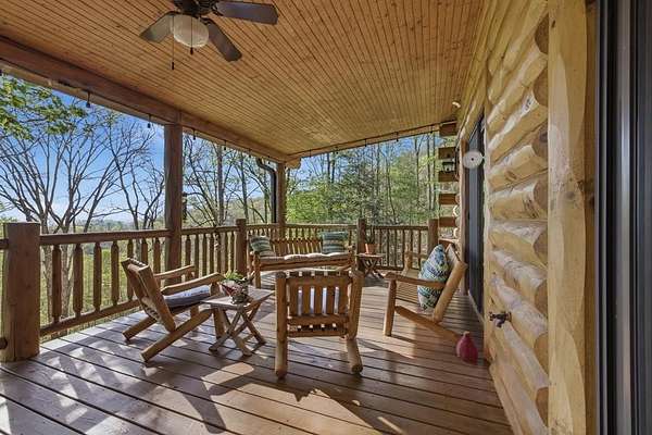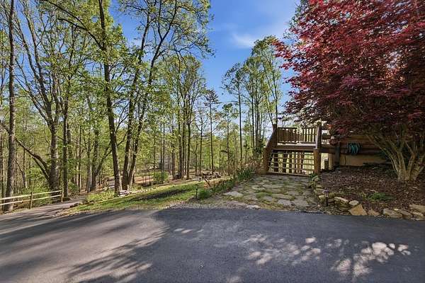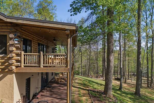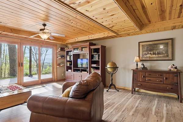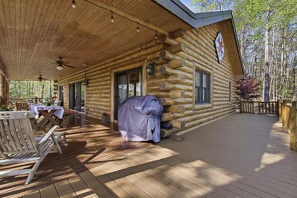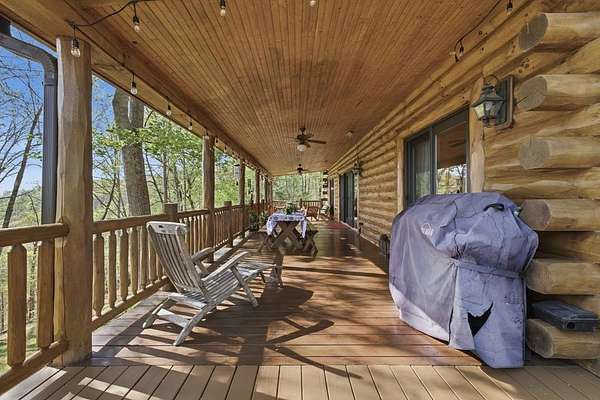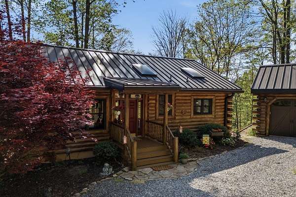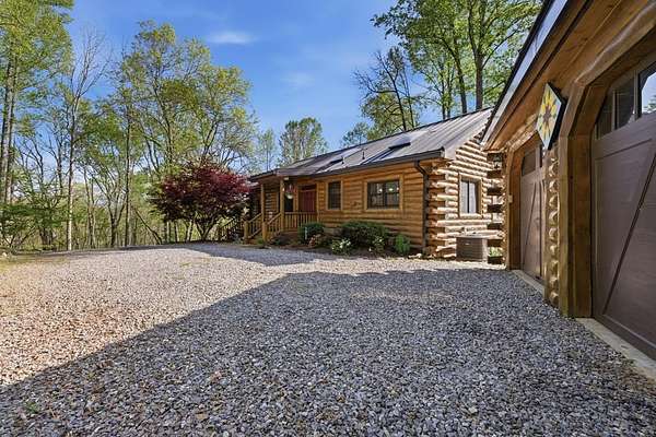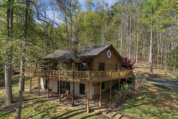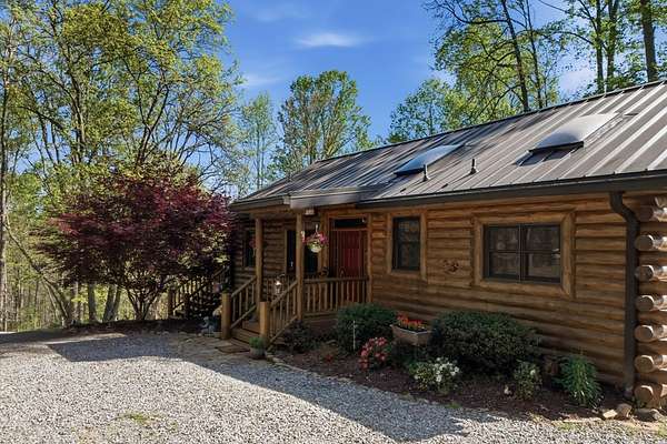 Real Log + Real Privacy = Real Value! Located on 2 acres in desirable and convenient Hollyberry Hills this custom 'PRESTIGE LOG HOME' offers paved dead-end privacy and a great floor plan for full or parttime living! You'll love the summer tree house feel with gorgeous hardwoods and cool breezes, and views opened up just enough to keep them year-round and then? Soak in the beautiful fall and winter scenery with wide mountain ranges and peeks of Lake Chatuge curled up by your cozy stone fireplace and coffee bar! Large gathering rooms with a great mix of T&G ceilings, drywall & skylights for the bright open feel that's so hard to find in a true log home plus, lots of glass with large sliders that open to wide, deep porches and open decks! Your guests, and you, will love the terrace level suite with large bedroom and bath, a 2nd family room with office niche, all with beautiful new flooring. Take a step out to the expansive concrete patio with steps down to the large firepit with smooth pavers and plenty of seating! Add in the 2-car garage with attached potting shed, the great lower-level workshop/craft area with tons of cabinet storage and outside access, extra parking areas, low maintenance natural landscaping, the gentle slope for outdoor activities and, you've found the perfect home to enjoy the sunny days and star filled nights! Recently stained and painted this home has been beautifully kept and is ready for its next chapter!