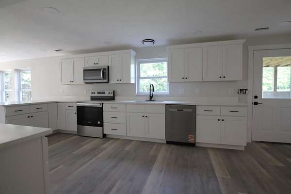 - Dishwasher, Disposal, Electric Cooktop, Electric Water Heater, Free-Standing Electric Oven, Microwave