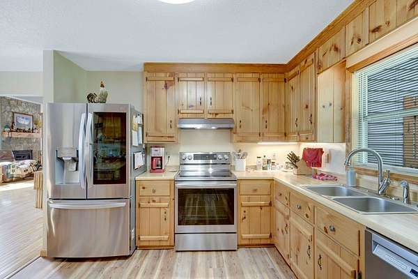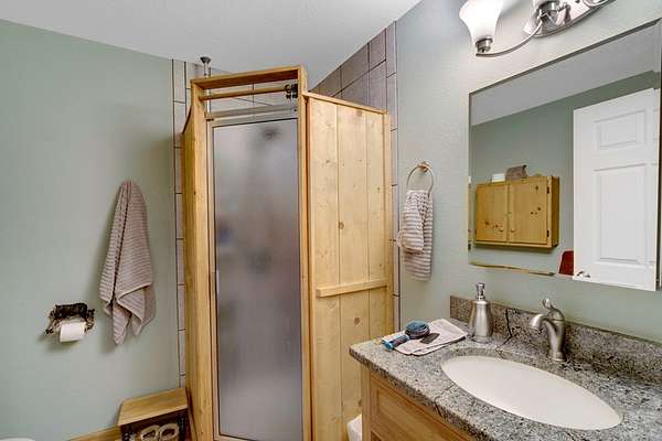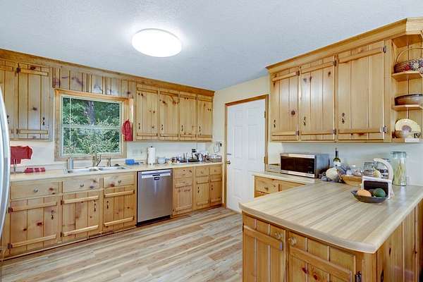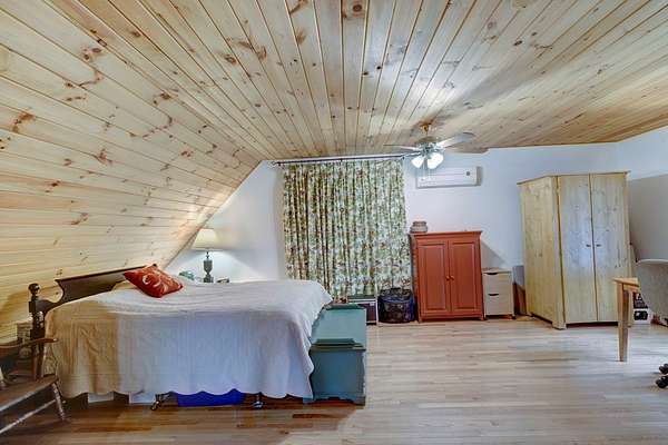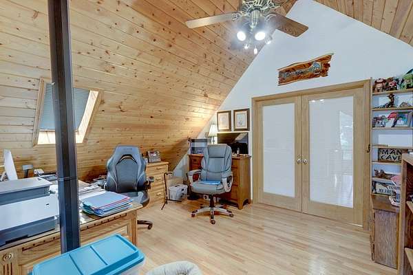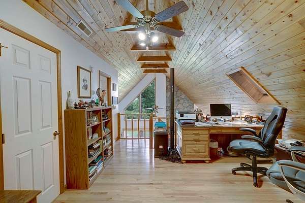 - Cathedral Ceiling(s), Ceiling Fan(s), Granite Counters, Pantry, Primary On Main, Smoke Detector, Tile Shower/Tub, Window Treatments, Wood Ceiling(s), Wood Walls