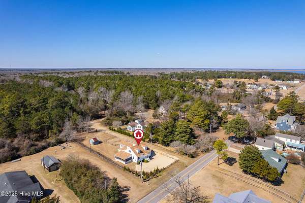 Buildable and subdivided acreage nestled in the serene town of Aydlett, North Carolina. This expansive 44.8-acre property offers a unique blend of natural beauty and tranquility. As you approach the property on Narrow Shore Road, breathtaking views of the Currituck Sound and Lighthouse welcome you home. The property encompasses four parcels with varied topography. Develop your dream compound or project! The elevated semi-waterfront lot features privacy plantings, while buildable areas of 3 additional parcels, boasting elevated dry land with mature trees. With a 12' deeded access to Currituck Sound, this property is truly an outdoor enthusiast's dream. The thoughtfully transformed farmhouse welcomes you at the entrance to the property. Open meadows, border privacy plantings and wooded walking paths invite endless possibilities for this amazing semi-soundfront acreage. One of the standout features of this parcel is its breathtaking sound views. The shimmering waters provide a serene backdrop, with stunning sunrise and moonrise moments. Stroll over to the 12-foot span of deeded soundfront waterline and cast a line or simply sit by the water's edge. This location offers boundless potential for exploration, connection with nature, and future development on the subdivided land. Whether it's hiking through the wooded trails, fishing in the nearby waters, or simply enjoying the quiet solitude, this property promises a lifestyle rich in the joys of Currituck's heritage. Aydlett, with its delightful small-town community charm, adds to the allure of this parcel. Here, you experience the perfect balance of rural living and convenience, with the beaches of the Outer Banks just a short drive away and the Norfolk airport an hour North. The owner has already successfully subdivided the acreage into four parcels. Lot one offers 12.1 total acres, 3.2 of which are buildable, and includes the 4-bedroom renovated farmhouse. The craftsmanship and beauty of the renovation s