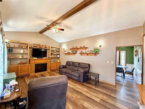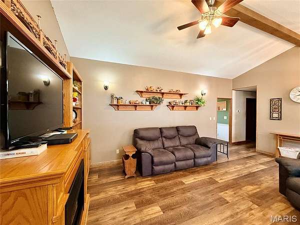 Welcome home to this charming 1990 ranch-style property offering comfort, efficiency, and room to breathe on 2.57 beautiful acres. With 3 bedrooms and 1 bath, this well-maintained home delivers simple, functional living in a peaceful setting just 10 minutes from town. Step inside to a spacious living room featuring a vaulted ceiling that enhances the open feel, along with a cozy electric fireplace framed by built-in shelving on both sides—perfect for displaying decor, books, or family keepsakes. Updated LVT flooring runs throughout the main living areas, providing durability and modern appeal. The eat-in kitchen offers abundant cabinetry plus open shelving ideal for showcasing your favorite dishes or decorative pieces. A 1-car attached garage adds everyday convenience. One of the standout features of this property is the impressive 32x50 shop. Plumbed for geothermal and already roughed in for a future bath, this versatile space includes an overhead door and drive-through sliding doors designed for RV or camper storage—so you can finally stop paying those monthly storage fees. Whether you need a workshop, hobby space, business area, or extra storage, this shop delivers flexibility. Outside, enjoy 2.57 acres dotted with beautiful mature trees and thoughtfully landscaped beds that are just beginning to show off their spring color. Tucked away on a private lane, you’ll love the quiet country feel while still being conveniently close to town amenities. This home checks all the boxes for comfortable country living…and it priced under appraisal!