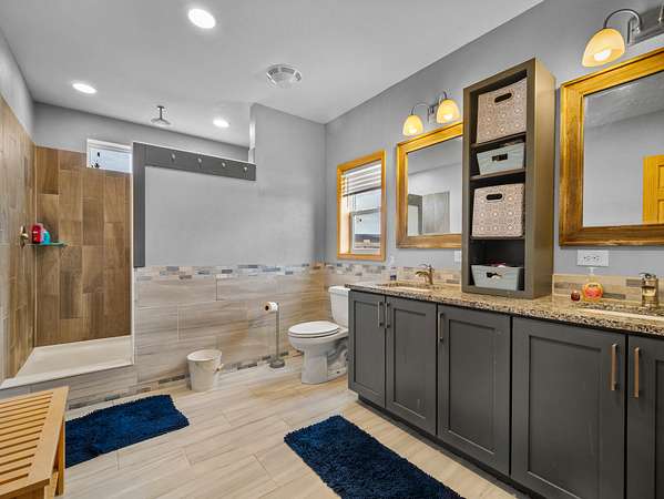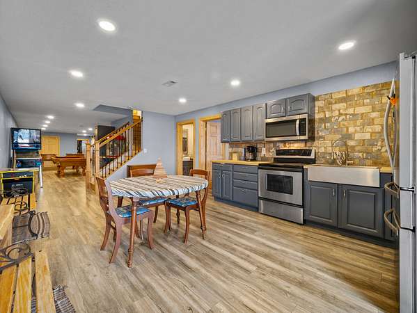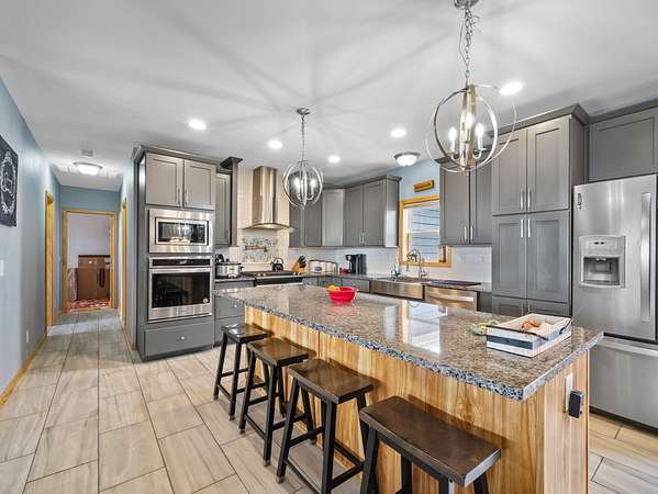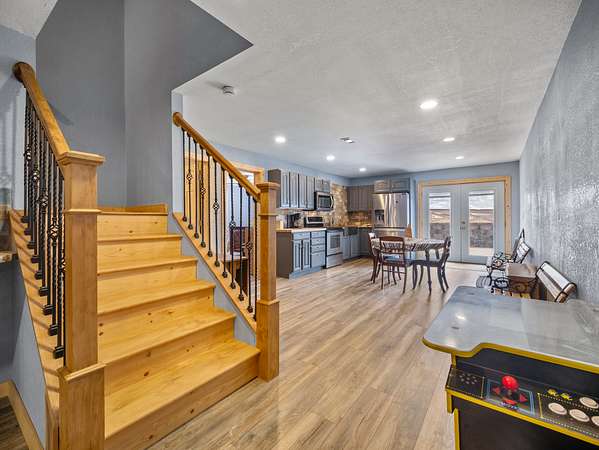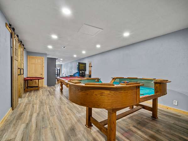 The home features 7 bedrooms, 5 bathrooms, including two master suites on the main level, along with two full kitchens, and two laundry rooms. A 480-foot deep private well provides excellent drinking water, and dual HVAC systems make this home ideal for large or multi-generational living. Designed for both entertaining and everyday life, the home boasts a theater room, game room, office, den, family room, a hidden safe room, and a walk-out concrete patio with a built-in fire pit.