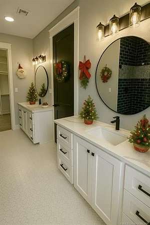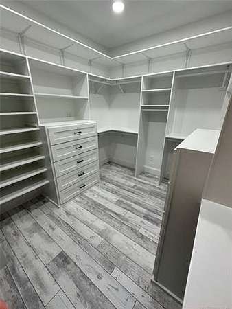 Two bedrooms downstairs, including a spacious primary suite with custom built-ins and an oversized walk-in shower and Two bedrooms upstairs