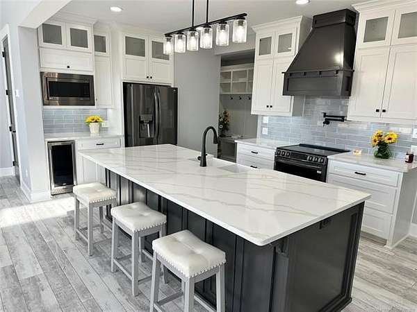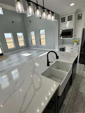 Brand New Custom Lake Home on Beautiful Lake Texoma!! Located just off Taylor Island View Road at Lake Texoma in Kingston, OK Welcome to your dream home at the lake! This stunning, energy-efficient 2-story custom build sits less than a mile from three boat ramps, offering the perfect blend of luxury, functionality, and relaxed lake living. 4 Bedrooms, 3 Full Bathrooms, Oversized 2 Car Garage on 3 acres. Open-concept layout with vaulted ceilings, cedar beam, and stylish black iron loft railing. Two bedrooms downstairs, including a spacious primary suite with custom built-ins and an oversized walk-in shower and Two bedrooms upstairs Two living areas which are ideal for entertaining or hosting guests Chef's kitchen Quartz countertops throughout Massive quartz island with seating for 6 Dark stainless LG appliances Custom soft-close cabinetry and dedicated drink bar Huge pantry with ample storage Mudroom & Laundry Room with built-in storage and quartz countertops Built with 2x6 and 2x4 framing plus full spray foam insulation, including in garage Dual high-efficiency HVAC systems Keyless entry Large covered cedar patio with ceiling fans and a custom cedar front porch Professionally landscaped low-maintenance desert-scape, sod, and a custom irrigation system Storm shelters available Builder available for additional shops or buildings This beautifully designed home is perfect for full-time living or as a lake retreat. Move-in ready and priced to sell. This one won't last long!