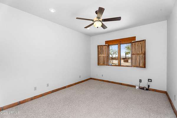 Custom home on 4.1 acres w/ serious horse setup fully fenced w/ electric entry gate. 6 stalls 24x16 (auto water, fans, programmable lights, mangers), roping arena w/ lights & 5-head sprinkler system, cattle pen, hot walker, turnouts, hay barn, tack room w/ water, sink & toilet. Wash rack, RV hookups (30 amp, water, septic). Shop has sep. panel, air piping-compressor conveys. House offers large closets & large bedrooms, 2 propane fireplaces, smooth texture walls, surround sound, Ecobee thermostats, Ring cam, ADT owned, intercom t/o, & USBs in every room. Kitchen has knotty alder cabs & Moen wave faucet. Cowboy touches t/o; vega beams, wood doors & windowsills, custom vents & adobe block. Garage fits a dually truck & features MyQ openers & cabinets. NEW well & NEW AC Unit!
