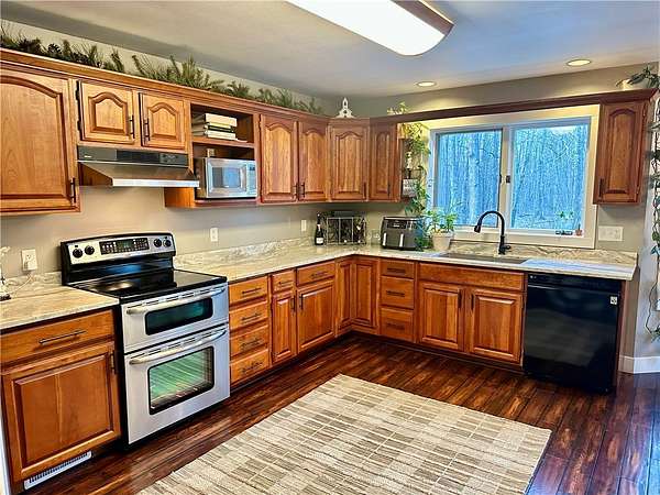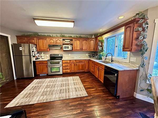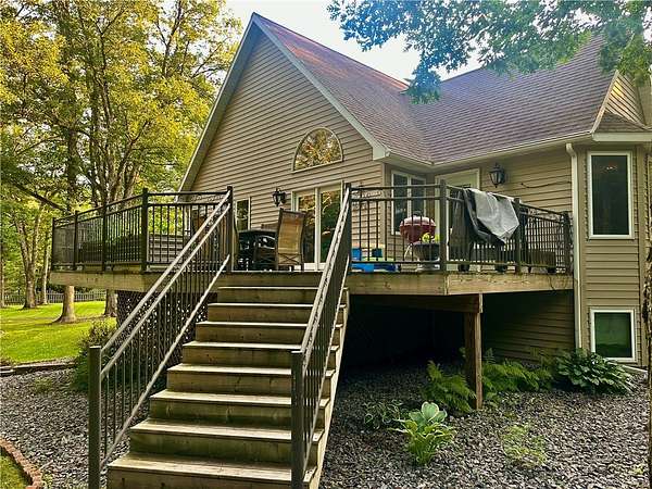 Approximately 30 min to Eau Claire and conveniently located by 1000's of acres of WI Public Land, trails and streams. This property is an outdoor paradise in itself having 7+ acres with many mature hardwood trees. You'll find a pride of ownership here with many tasteful updates: new cabinets, solid surface counters, flooring, paint, firepit and more. There's in-floor heat in the basement that creates comfortable lower level living spaces that have natural light.