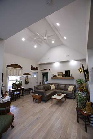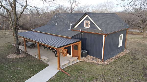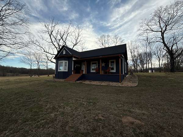 1,123 square foot, 1 Bed, 2 Bath home site on mostly fenced pastureland with treed edges and gently rolling hills. The home has been completely remodeled in the last 3 years and now features vaulted ceiling, an open kitchen/dining/living room, and amenities of modern-day homes, while maintaining a farmhouse feel. Covered porches on the front and rear of the house provide space to enjoy the outdoor air with friends and family whether it is sunrise or sunset. A detached 2-car garage provides protection for vehicles, while a 60' X 40' outbuilding provides cover for equipment and storage needs, and another 75' X 40' livestock style building allows the possibility of shelter for horses, cows, chickens, and pigs.