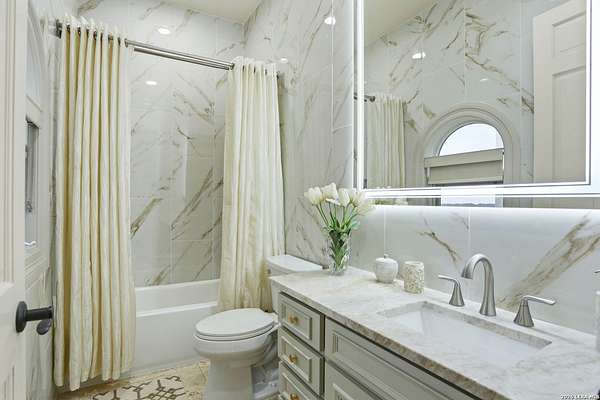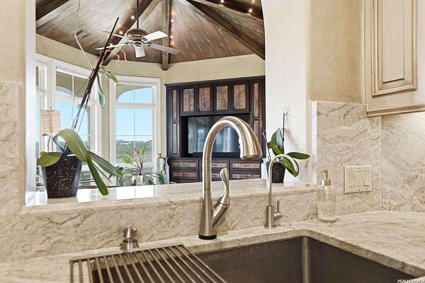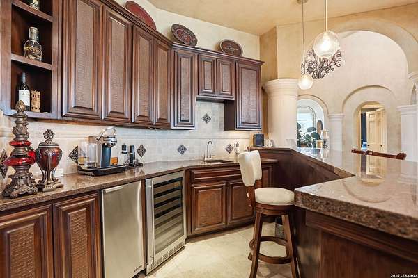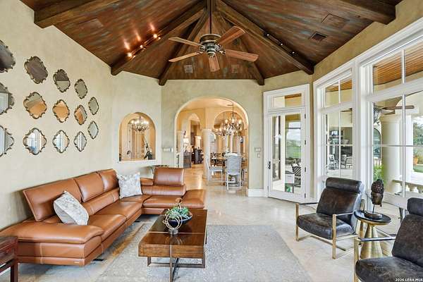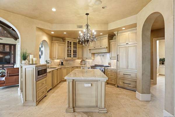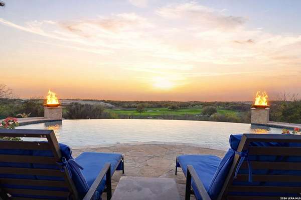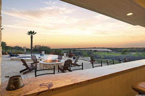 Luxury living overlooking Briggs Ranch Golf Course * Situated on nearly 2.5 acres, this exceptional estate offers breathtaking views of the Tom Fazio-designed golf course at Briggs Ranch, combining privacy, elegance, and resort-style living * The main residence features four spacious bedrooms, each with its own en suite bath * The primary suite is a true retreat, complete with a fireplace, dual custom closets, and a recently remodeled spa-inspired bathroom showcasing updated fixtures, countertops, and a beautifully redesigned shower surround * Additional highlights include a private sitting area and a dedicated workout room, both overlooking the serene putting green * Two of the three secondary guest bathrooms have been thoughtfully remodeled, enhancing comfort and style throughout the home * A well-appointed guest house provides ultimate flexibility, featuring a private bedroom with en suite bath, a separate pool bath, and an impressive outdoor kitchen equipped with a built-in gas grill, dual burners, refrigerator, offset smoker, TV, and bar-top seating-ideal for entertaining * The outdoor living experience is unmatched, with recently updated coping and tile across the expansive patio, outdoor stairways, and infinity-edge pool surround * A fire pit and additional fire features create a warm, inviting atmosphere for evening gatherings * The gourmet kitchen is designed for both function and style, boasting a Thermador gas range, built-in refrigerator, updated countertops, new fixtures, and dual refrigeration drawers within the island * Additional upgrades and features include: Whole-home Sonos sound system (indoor and outdoor) * Surround sound system in the family room Power lift for garage storage * Enhanced street presence with added pedestals * Proximity to a newer H-E-B, movie theater, and two premier golf courses * This remarkable property blends luxury, comfort, and entertainment in one of the area's most desirable golf course communities * Most furnishings are for sale or negotiable *
