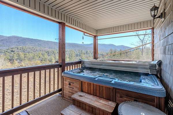 BEAUTIFUL MOUNTAIN VIEWS FROM THIS IMMACULATE 2 BD/2 BA HOME which is privately situated on just under 5 acres of unrestricted land! Step into the home and you are greeted with attractive wood vaulted ceilings, and hardwood floors. Cozy up with loved ones in front of the stone fireplace in the living area. Kitchen is a culinary enthusiasts dream equipped with a lovely kitchen island, complimenting granite countertops, and plenty of cabinet space. Off the kitchen you will find a large dining room to enjoy with company on special occasions. The primary bedroom has a full ensuite bathroom with a double vanity, oversized tub, full shower, walk-in closet, and it's own private access to the screened-in covered deck to take in those stunning mountain views! Home has an additional guest bedroom and full bathroom. With all one level living this home makes it particularly appealing for the longer term. Relax in the hot tub, and take in the peaceful surroundings. Home has a 2 car attached garage, as well as, abundant space for parking. Property offers an enclosed outbuilding, as well as, an additional open air lean-to shed for storage and hobbies! Fenced in space for your furry friends near the home, and a large fenced in area that could be used for farm animals, if desired. Come enjoy the peace and beauty this home and property offers! Don't miss a wonderful opportunity for secluded tranquility and be within 15 minutes to Downtown Murphy!
