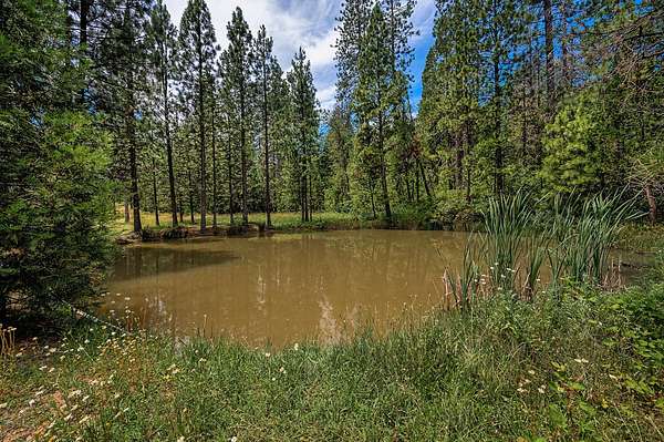 A private gated entrance leads you to this grand, spacious home tucked away on 25 wooded acres with four ponds in a gorgeous mountain setting. There is also a 2700 sf metal shop building with 3 roll up doors, office and upstairs storage area. The home features beautiful hand crafted wood beams which decorate the living room and master bedroom ceilings. The rooms are large and features include high ceilings, hand carved doors, antique hardware, and hardwood floors. Add an Armoire in the library/study and it becomes a 4th bedroom. Primary bedroom has 2 full bathrooms each with a walk in closet. Two bedrooms upstairs with a living space and a full bathroom. The property is surrounded by timbered forest and backs up to Sierra Pacific land.