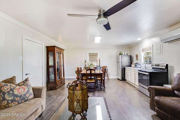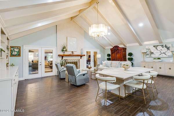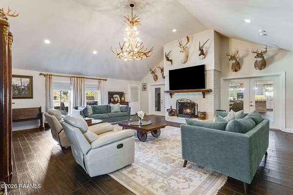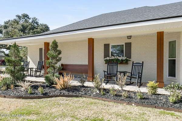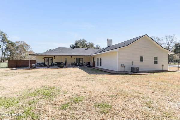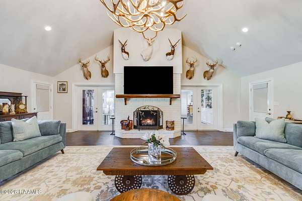 Welcome to this beautifully transformed, breath-taking, country retreat, ideally located just off I-49 and surrounded by peaceful pastureland. This meticulously maintained property sits on approximately 10 acres, with additional acreage available, offering privacy, versatility, and convenience. A welcoming drive leads to a pristine home featuring expansive lawns and inviting outdoor spaces. Inside, the grand foyer opens to an impressive living area with soaring cathedral ceilings, exposed beams, and a dramatic two-sided fireplace that connects two oversized living spaces-perfect for entertaining and everyday comfort. The open-concept design flows into a chef-inspired kitchen with wall-to-wall custom cabinetry, generous countertops, a large island, decorative vent hood, and stainless appliances. A charming keeping area and spacious utility room enhance functionality. A private office or guest suite includes an adjoining bath and oversized closet with vanity. Additional guest bedrooms are generously sized, including one with a built-in vanity, and the hall bath offers double vanities. Storage is abundant throughout. The primary suite provides a peaceful retreat with direct access to the covered back patio and scenic backyard views, along with a welcoming ensuite bath. Outdoor amenities include a large covered patio with ceiling fans, fenced yard, workshop with roll-up door, attached outdoor kitchen/guest cottage, barn and freshly fenced pastureland suitable for livestock or hobby farming. This exceptional property blends refined interior living with expansive outdoor space and endless possibilities. Schedule your private showing today.