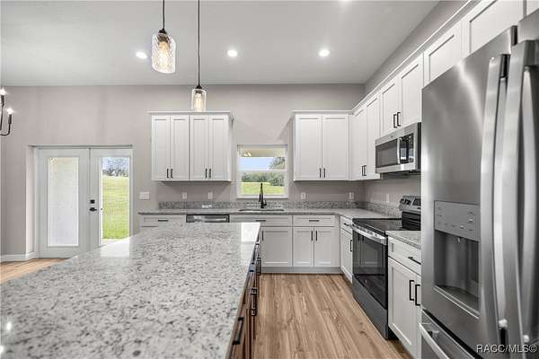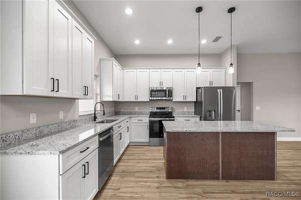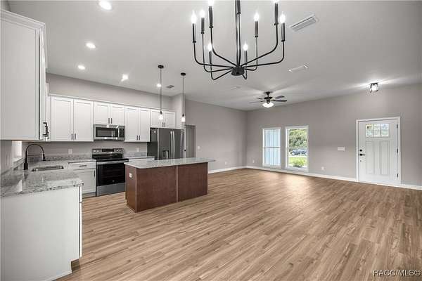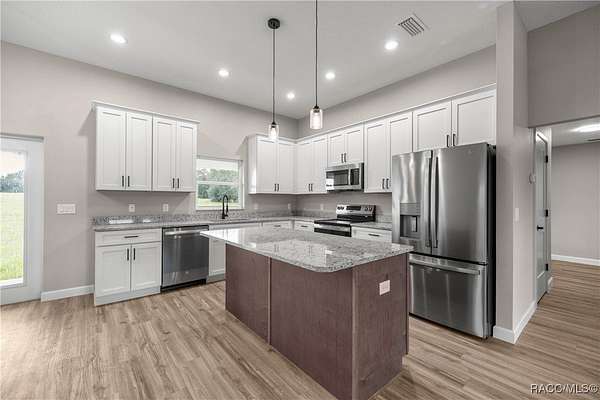 NEW CONSTRUCTION!!! *SELLER OFFERING UP TO $5,000 IN CONSESSIONS* This stunning new construction home, set on over an acre of land, offers a perfect blend of luxury and functionality. The open floor plan invites natural light throughout, with a spacious eat-in kitchen and a breakfast bar that is ideal for casual dining or entertaining. The kitchen is a chef's dream, featuring sleek granite countertops, solid wood cabinets with soft close doors and drawers, a large pantry, and modern stainless steel appliances, all complemented by elegant black finishes. Luxury vinyl plank flooring flows seamlessly throughout the home, combining durability with style. Each bedroom offers generous walk-in closets, providing ample storage. he master suite boasts a spa-like bathroom with a walk-in shower, complete with frameless glass for a modern touch. Energy efficiency is top of mind, with spray foam insulation ensuring optimal comfort year-round. The home is the epitome of modern living, blending high-end features with a serene and spacious setting. This is centrally located in Citrus County, keeping you close to everything including the Gulf of America and Crystal River and all the shopping that you desire in the new Shoppes at Black Diamond shopping center that features a Hobby Lobby and Target! Also, very close to multiple restaurants, doctor and hospitals. Call me today to see this beauty in person!