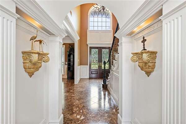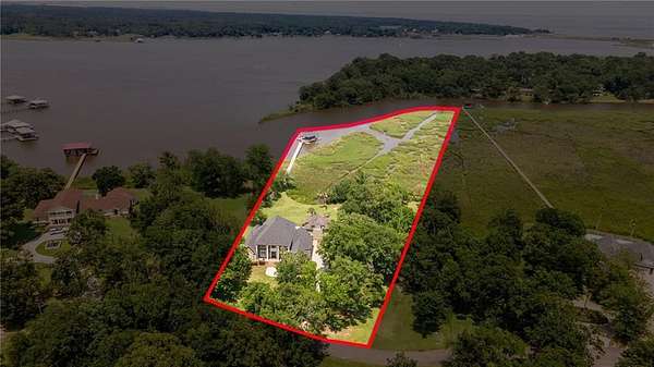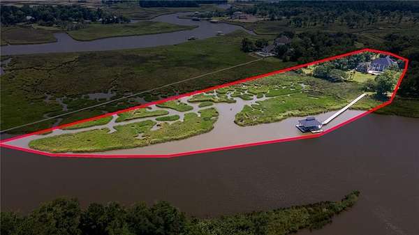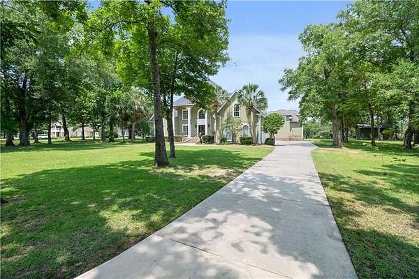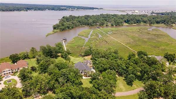 Seller will ENTERTAIN offers between 1,999,999 and 2,300,000. The list price is equal to the upper and the lower value range. Stunning Waterfront Estate with exceptional amenities on 4 Acres located on a quiet cul-de-sac with 300 feet of serene waterfront, this beautifully maintained, estate offers an unmatched blend of luxury, comfort, and functionality. The main house boasts over 7300 square feet under roof and over 5800 square feet of heated and cooled space. This 5-bedroom, 3 full bath, 1 half bath custom-built, builders personal home, features a new fortified roof installed in August 2022 on both the house and boathouse. Step into a thoughtfully designed open floor plan with 10-foot ceilings downstairs and 9-foot ceilings upstairs, complemented by tile floors on the main level and carpeting upstairs with the exception of one room that could be craft room, hobby room, or playroom. Architectural details include hand designed leaded glass front doors, crown moulding throughout, hand-carved marble fireplace mantle, iron handrails, and a beautiful barrel ceiling from the foyer to the living room.The primary suite is located on the main floor, offering a private sitting area and a spacious ensuite with very large custom closets. The four additional bedrooms upstairs all feature huge walk-in closets and access to three walk-in attics for ample storage. The home also includes an oversized formal dining room and private office just off the foyer. This is a builders personal home and it was designed for both everyday living and entertaining, the chef's kitchen boasts custom cabinets, massive countertops, and natural light that fills the space. A theater room features Gladiator seating chairs with shakers, surround sound, and specialty lighting. Just off the theater room is a huge playroom with pool table that offers more fun for all ages. Step outside to a true oasis: the saltwater gunite pool is fully fenced and accompanied by a tiled outdoor kitchen (additional 575 square feet) that is complete with wood-burning fireplace, additional half bath, Primo grill, and access to the gym that is heated and cooled and will remain furnished (610 square feet) plus has an incredible view of the river. This set up allows for unmatched indoor/outdoor living space that will be the place of TONS of great family memories. This space also lends itself to the possibility to be converted to an additional dwelling unit/Air B&B with some minor renovations. The custom pier and boathouse with lift provides direct access to Mobile Bay and the Gulf of America for boating, world class fishing or just simply enjoying the peaceful surroundings. Whether you take the boat for a sunset cruise or sipping your coffee on the pier this exclusive setting defines serene, waterfront living at its FINEST. Set on approximately 4 lush acres, this property offers beautifully maintained landscaping with irrigation system throughout the entire property, mature shrubs, and greenery that create a peaceful, private retreat. The grounds feature a CrossFit-style training course, ideal for active living, as well as a separate garage-style storage building--perfect for tools, gear, or hobby space. There's ample room to park a boat, boat trailer, or RV, making this estate as functional as it is scenic.