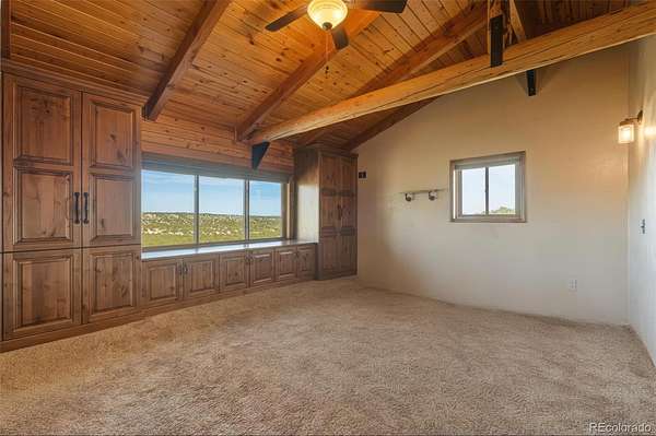Discover ultimate privacy and self-sufficiency on this exceptional 252-acre mountain property with panoramic views of plains, valleys, and Wet Mountains. This custom 2,112 SF mountain contemporary log home features vaulted ceilings, granite counters, bamboo flooring, primary suite, and walk-out daylight basement—perfectly positioned for your private dude ranch, hunting preserve, or off-grid homestead.