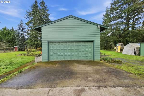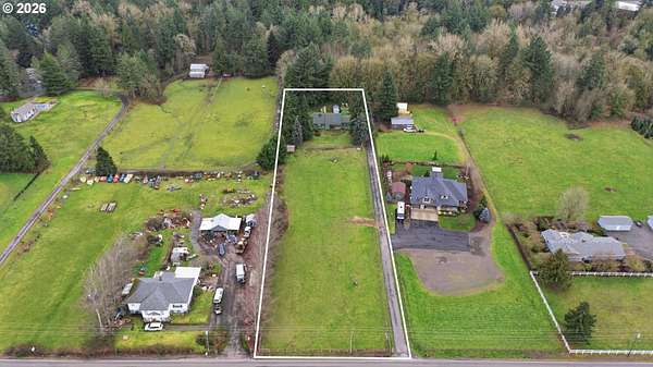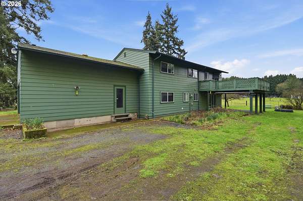 Back on Market and ready for you to bring your vision and unlock the potential of this rare Newberg acreage property! Discover peaceful country living just minutes from downtown Newberg. Situated on a level 2-acre property, this inviting 4-bedroom, 3-bath home offers space, privacy, and the perfect blend of rural charm and modern comfort. Step inside to a warm, welcoming layout with multiple living spaces, including extra storage and workshop room on the lower third level, abundant natural light throughout, and room to spread out. The home's flexible floor plan includes spacious bedrooms, including a serene primary suite with a private deck overlooking the trees, the perfect place to enjoy quiet mornings or breathtaking evening skies. The property is equipped with air conditioning and abundant storage throughout, including a tool shed, a Conex Storage Container (with power & dry), and a large, partially unfinished basement that offers endless possibilities for expansion, hobbies, or additional living space. With a rare second-homesite option and dividable lots, this property is ideal for building your dream home, adding an additional dwelling, or creating a multi-generational retreat (buyer to do due diligence with the city & county). Located in the heart of Oregon wine country, you're just a short drive to Newberg shops, restaurants, schools, world-class vineyards, and commuter routes to Wilsonville and the Portland metro. This is the ideal balance of convenience and privacy. If you know the area well, you know the acreage alone would be valued between $400,000 and $500,000, making this a great find! If you've been searching for acreage, flexibility, and a home with endless potential, this one is a must-see.
