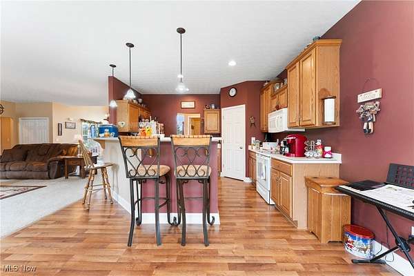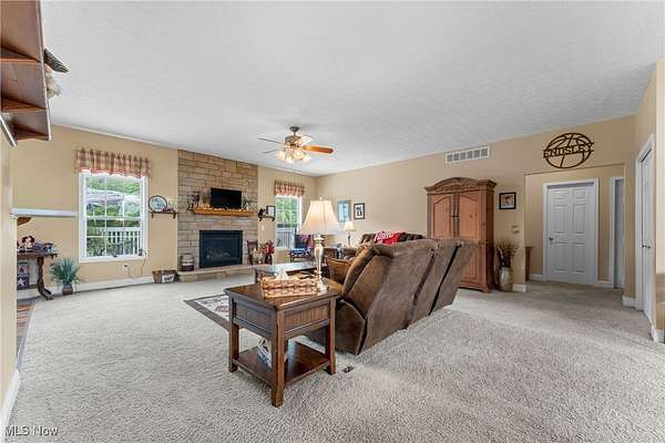 This stunning 3-bedroom, 2-bath ranch, built in 2010, offers nearly 4,000 sq. ft. of finished living space that perfectly blends modern comfort with country charm. Start your mornings in the sun-filled sunroom overlooking serene ponds, wooded acreage, and your very own fruit trees, grape arbor, and gardens. Inside, a cozy gas fireplace anchors the inviting living area, while the spacious kitchen is ideal for family meals and entertaining. The finished walk-out basement, complete with a wood-burning stove, provides endless possibilities for a home theater, game room, or guest suite. Step outside to explore three stocked ponds, wooded trails, and open spaces for play, gardening, or quiet reflection. The versatile outbuilding can be used as a workshop, sports area for the kids, or transformed into your own custom space. With modern amenities, expansive outdoor living, and privacy just minutes from local conveniences, this property is more than a home-it's a lifestyle. Schedule your private tour today and experience it for yourself!