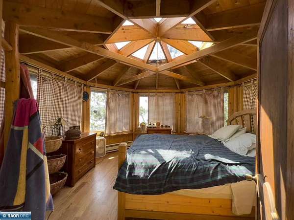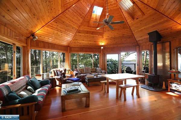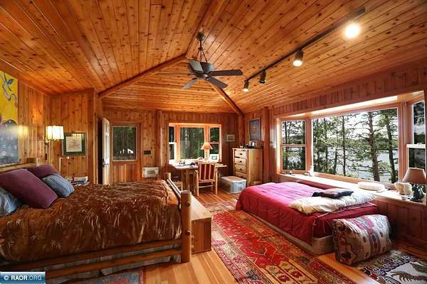 There is no other property on iconic Burntside Lake like this one! Welcome to Aurora Waters, a one of a kind, landmark home on a spectacular island! This is a magical property: 5 hand crafted cabins and 4 exotic Yurts spread through an enchanted, open forest of 20.9 acres with 2,140 feet of sunny, southern facing shoreline. Towering Norway pines and high granite bluffs offer shimmering island studded views across the vast, main body of the lake to the legendary Boundary Waters Wilderness, world famous for canoe trips. Catch giant lake trout in the 120' clear, spring fed depths in front of your dock, and sauna and swim under the shimmer of the Northern Lights. Bald eagles and deer abound. Loons call in the still twilight, and the stars are bright and close. Waters Island is the largest, most central island on Burntside and Aurora's neighboring forest is held in a Land Trust. It's the ultimate in seclusion and privacy, yet easily accessible via a nearby dock (included).
