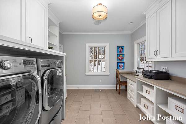 - Bar Fridge, Built-In Electric Oven, Cooktop, Dishwasher, Disposal, Double Oven, Dryer, Humidifier, Microwave, Refrigerator, Washer