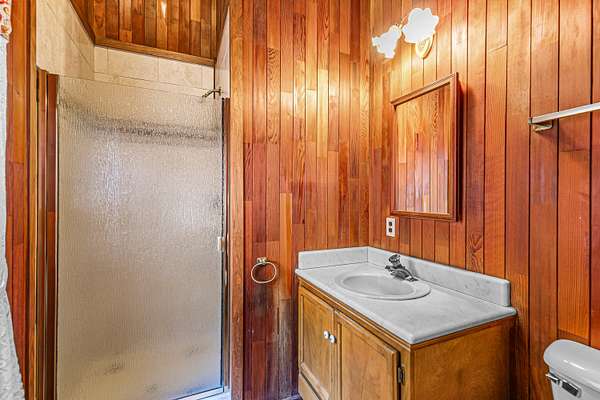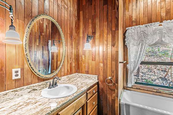 - Breakfast Bar, Built-In Features, Ceiling Fan(s), Double Vanity, Granite Counters, Kitchen Island, Open Floorplan, Pantry, Shower/Tub Combo, Vaulted Ceiling(s)