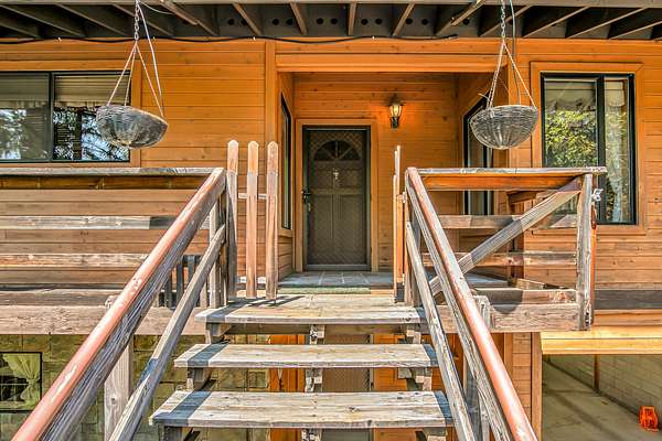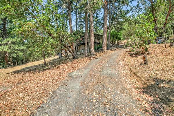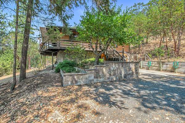 First time on the market, owner/builder put his heart & soul into this Cedar Sided home. Situated back off the Hwy on a knoll to capture the beautiful views. Two separate tax lots, undeveloped lower lot is 8.11 ac, RR Zoned, check with county for potential development. The upper 5.08 ac includes the custom home. The main living room, kitchen, along w/ 2 bds & 2 bth are on upper level for easy living. Custom kitchen features granite counters, alder cabinets, copper hood over a Viking range, slide out pantry & breakfast bar. Living room has floor to ceiling windows along w/ an energy efficient Blaze King wood stove. The open floor plan offers easy access out to the large covered deck to enjoy this peaceful setting. Lower level/daylight basement includes 3rd bd, shop, laundry, 1/2 bath, wine cellar & a single car garage. The woodlot has been well managed. Just minutes out of Historic Jacksonville & local wineries. Some photos virtually staged. Seller to credit $10,000 Flooring allowance.