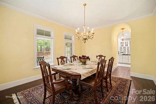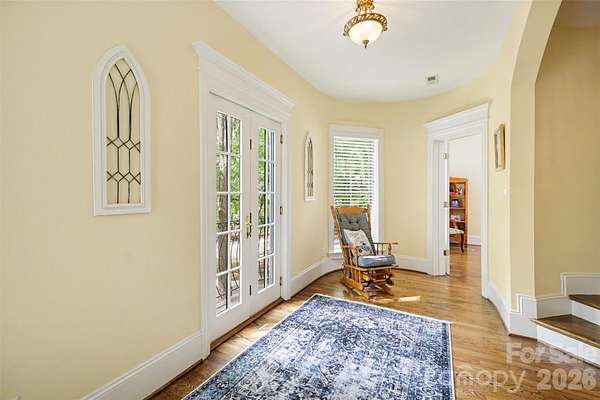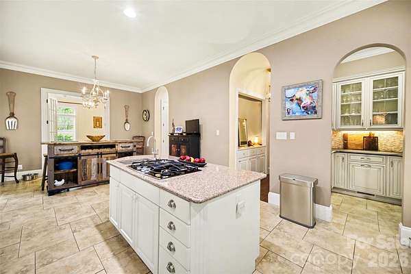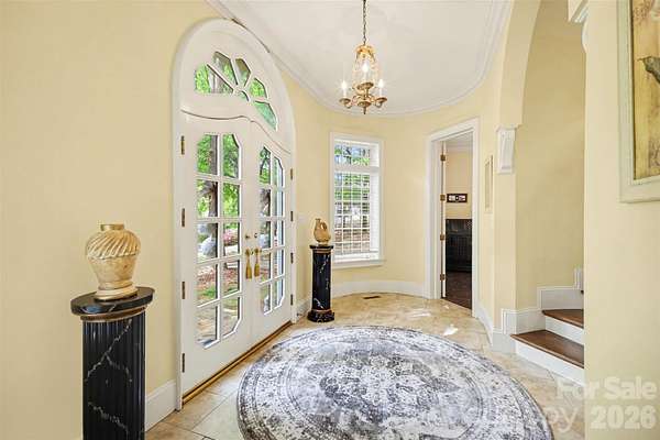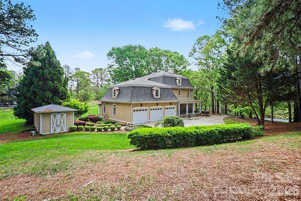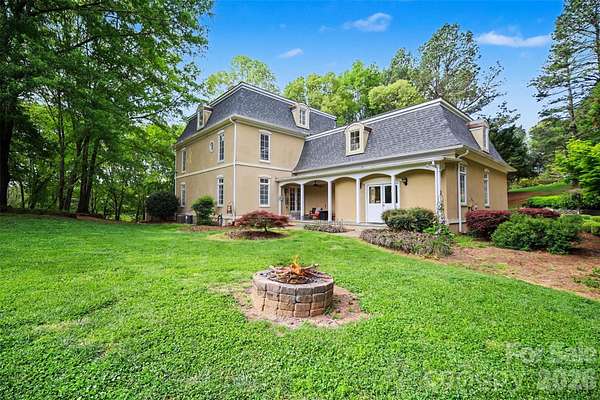 Stunning architectural details define this unique French Provincial home located in a quiet estate lot subdivision in the peaceful countryside...only 10 minutes to Uptown Shelby and only 5 minutes to the new Highway 74 Bypass which will link Asheville to Charlotte with no stoplights! UPDATES INCLUDE: roof (replaced 2024), gutter guards, and new heat pump on 1st floor (2025)! The stunning custom central staircase winds through the center of the home, and arched door openings, transom windows, high ceilings, and large windows are consistent throughout. Meticulously maintained, this is a unique and special home. The main floor features a living room with gas log fireplace, music room with beautiful coffered ceiling, dining room, half bath, spacious kitchen with center island, stainless steel appliances, new copper hood detailing, and multiple doors leading to lovely covered porches. Notice the unique and useful butler's pantry which hides all of your kitchen gadgets and provides an additional work space removed from the central kitchen. Features include glass front cabinets, leathered granite countertops, wine refrigerator, and plenty of storage space. On the second floor, there is a primary suite with gas log fireplace, huge en-suite bathroom with separate vanities, large walk-in shower, jetted tub, and massive walk-in closet with windows that provide natural light. The laundry closet is conveniently located in the center of this floor, and there is an additional bedroom with en-suite bathroom. Don't miss the Juliet balcony that overlooks the front of the house! There is also a second, back staircase that runs from the kitchen to a second floor landing with a huge recreation room! This room contains a wet bar, half bath, and plenty of room for all of your fun things! On the third floor, you will find a spacious central den and sunroom with window seats, an additional bedroom, full bathroom, a BONUS room that can be used as a bedroom, and an additional storage room. This area, too, has so much character with window seats and the continued arch details. There is an oversized 3 car garage with windows, finished walls and ceilings. A light-filled hobby room/workshop has doors that lead to another covered patio, and there is an additional half bath off the garage. A separate outbuilding was previously used as a pottery shed and has a mini-split HVAC that seller has never used and is sold AS IS. Beautiful grounds with fire pit and circle drive for visitors and views of the neighbor's pond across the street -- all of this in a peaceful, quiet, walkable neighborhood just minutes from amenities! Your dream estate awaits!!! Septic is permitted for 4 bedrooms (see docs). Additional square footage includes the half bath and workshop that are accessed through the garage. The sellers are offering a ONE YEAR HOME WARRANTY for buyers' peace of mind. Call for more info!