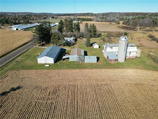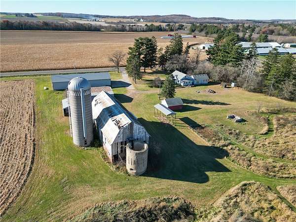 If you are searching for a spacious home on acreage with outbuildings, check this out! Includes an older barn, storage shed, large machine shed and a newer 40x100 finished pole shed complete with checkered tile garage flooring, workshop area, storage area and upper loft office with bathroom and laundry! Also included is large generator that can run the entire property if needed. Property is on 20 acres just 1/2 mile south of Dallas. Entire house was completely gutted to the studs and rebuilt with addition approx. 20 yrs ago. Quality custom, handcrafted cabinetry and built-ins throughout. This is a very unique and special property!